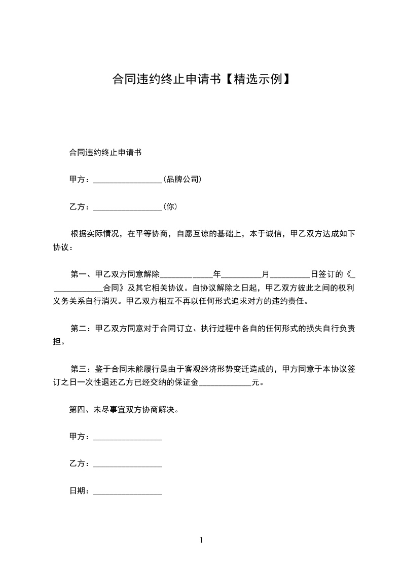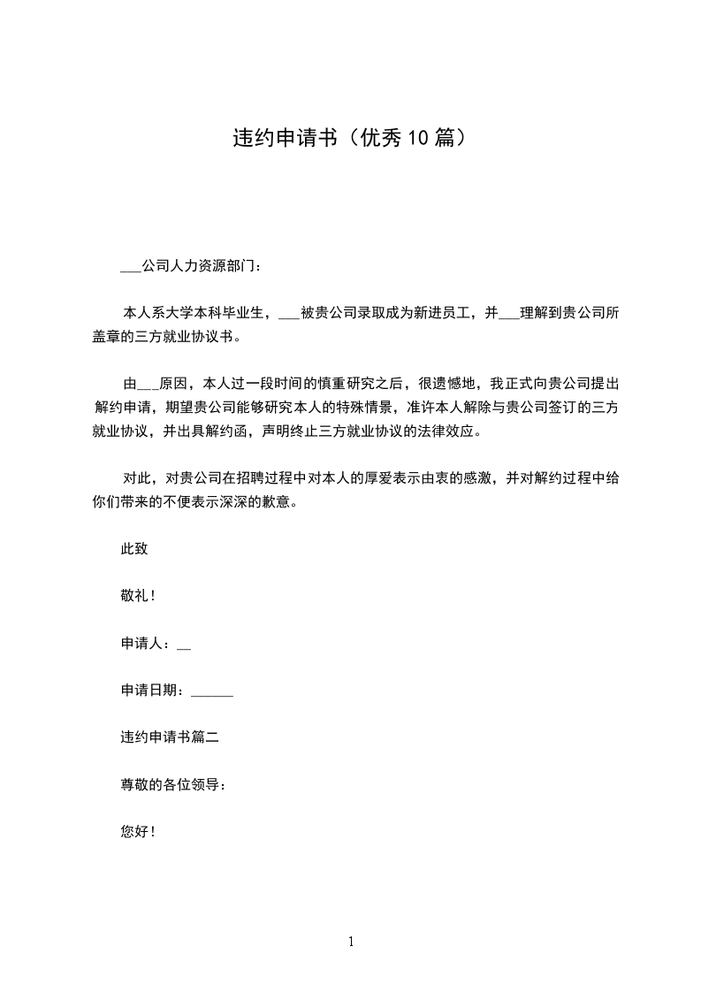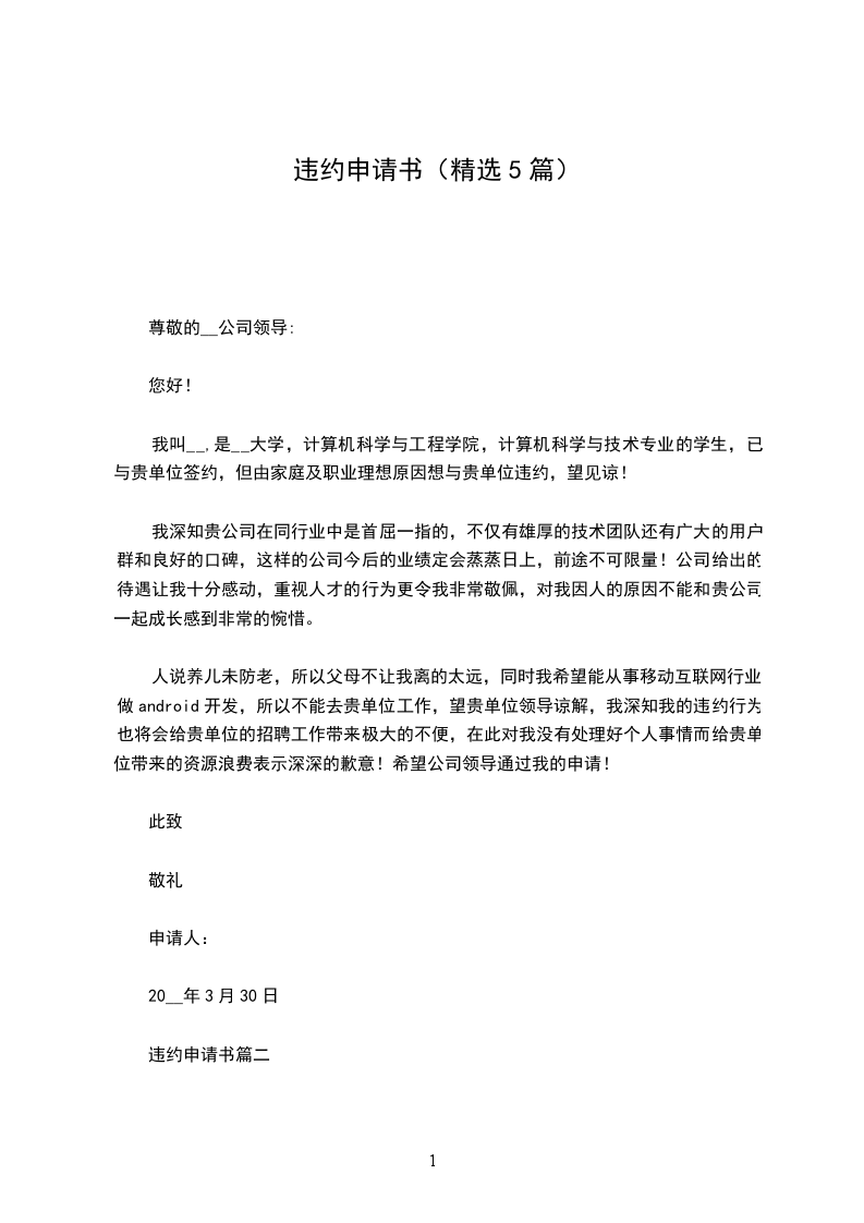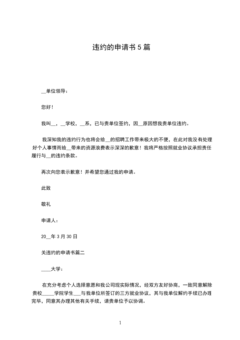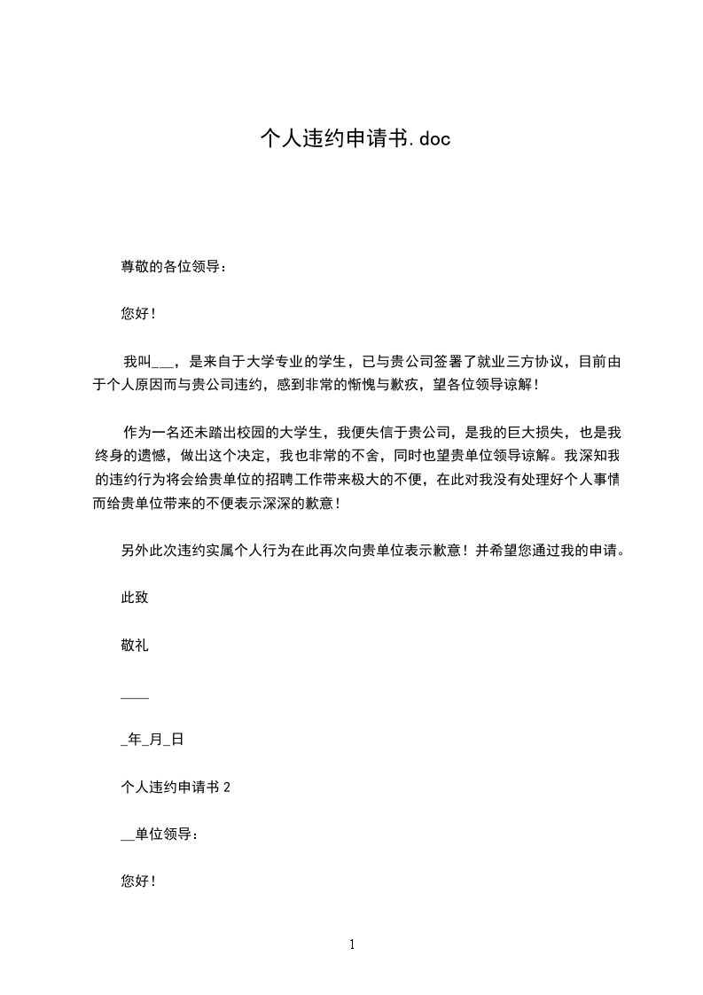 你好!我叫___,来自__大学__学院,因个人原因想与贵单位违约。
