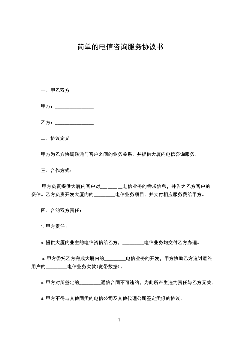 1.乙方与甲方共同合作开发_____公司在_______大厦内客户,乙方所签约客户必须告之甲方,乙方长途语音总营业额的___%,宽带数据总营业额的_________%作为服务费交付甲方(税金甲方自理)。