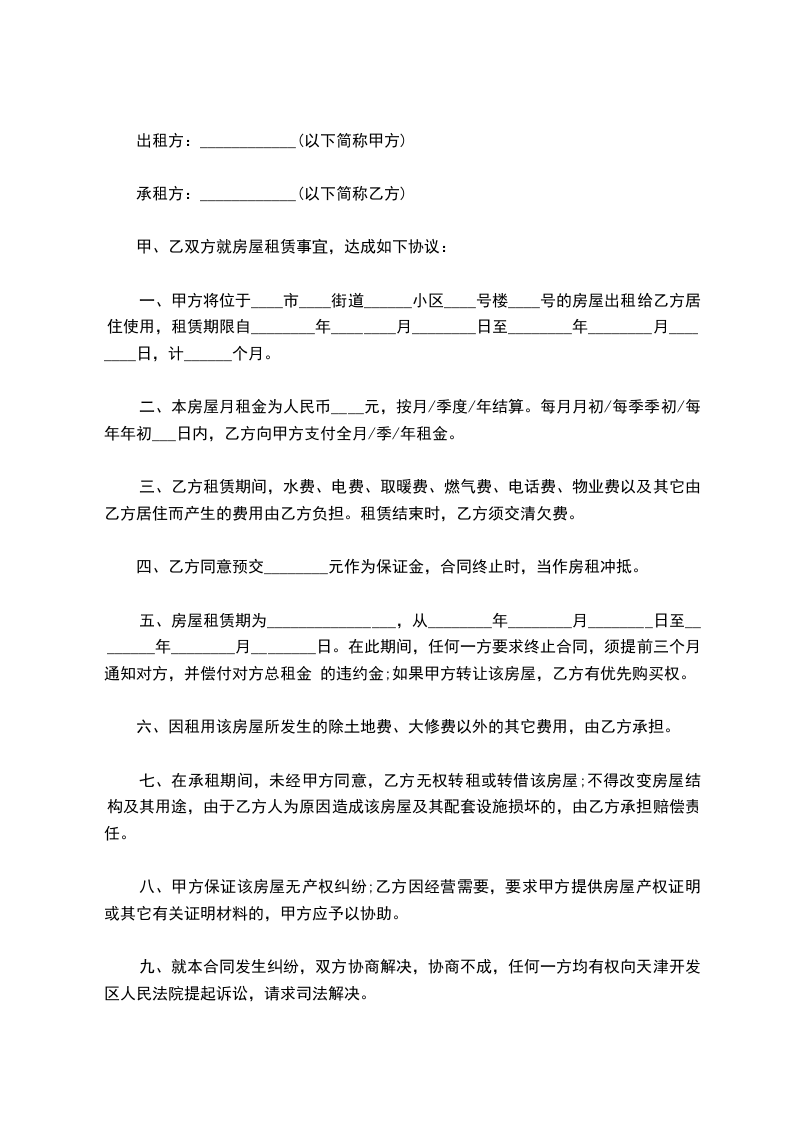 2-1__乙方所承租房屋用于__________________________________________(居住/商业服务业/办公/工业/仓库/其他约定)。
