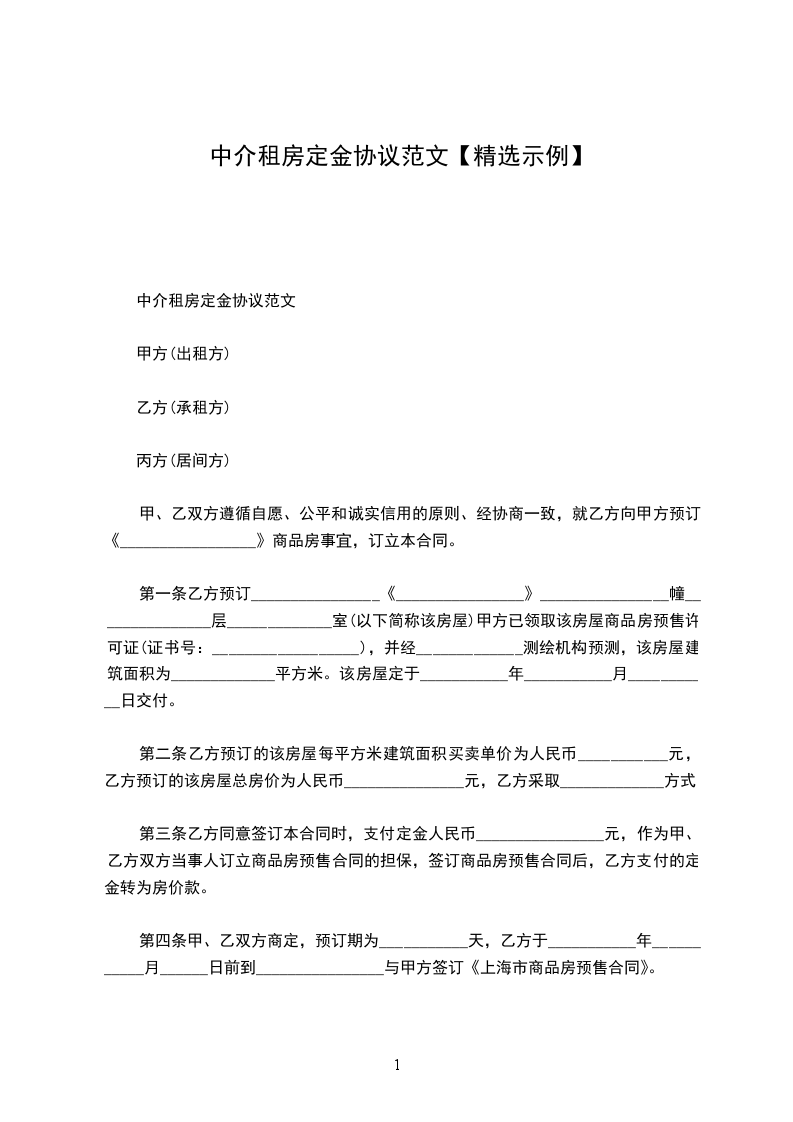 1、双方议定押金为(大写)___圆整,该保证金不可视为乙方预付的租金。甲方收到保证金后应予以当面签收。