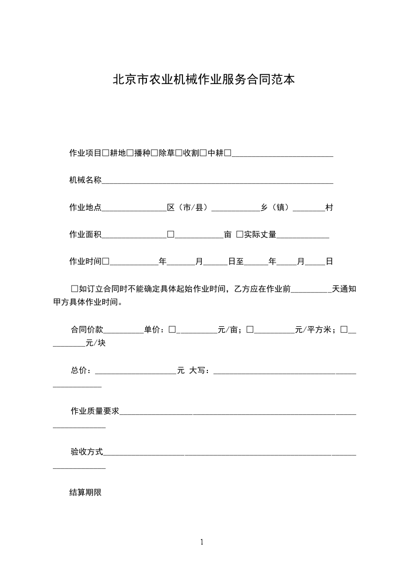 北京市农业机械作业服务合同条款