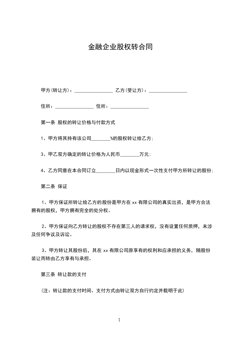 第四条股权转让的费用负担股权转让全部费用(包括手续费、税费等),由双方自行约定的方式承担。第五条协议的变更与解除发生下列情况之一时,可变更或解除本协议,但甲乙双方必须就此签订书面变更或解除协议书。