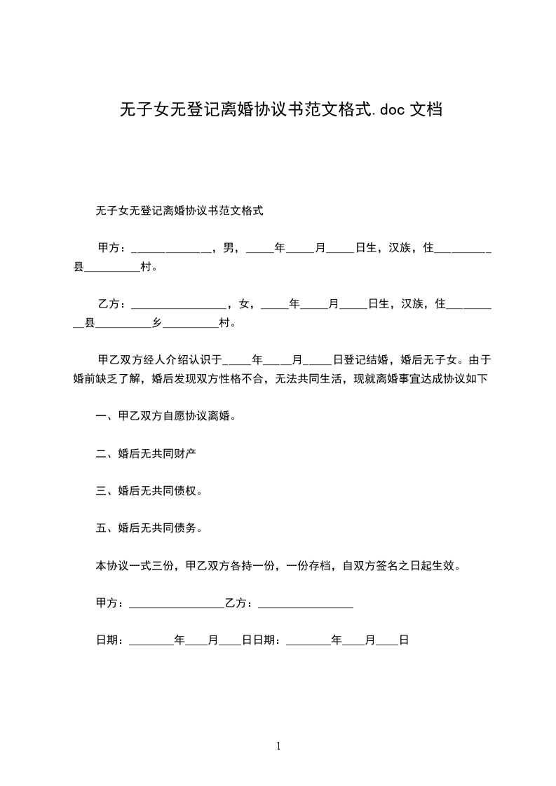 甲乙双方经人介绍认识于_____年_____月_____日登记结婚,婚后无子女。由于婚前缺乏了解,婚后发现双方性格不合,无法共同生活,现就离婚事宜达成协议如下: