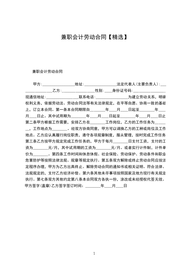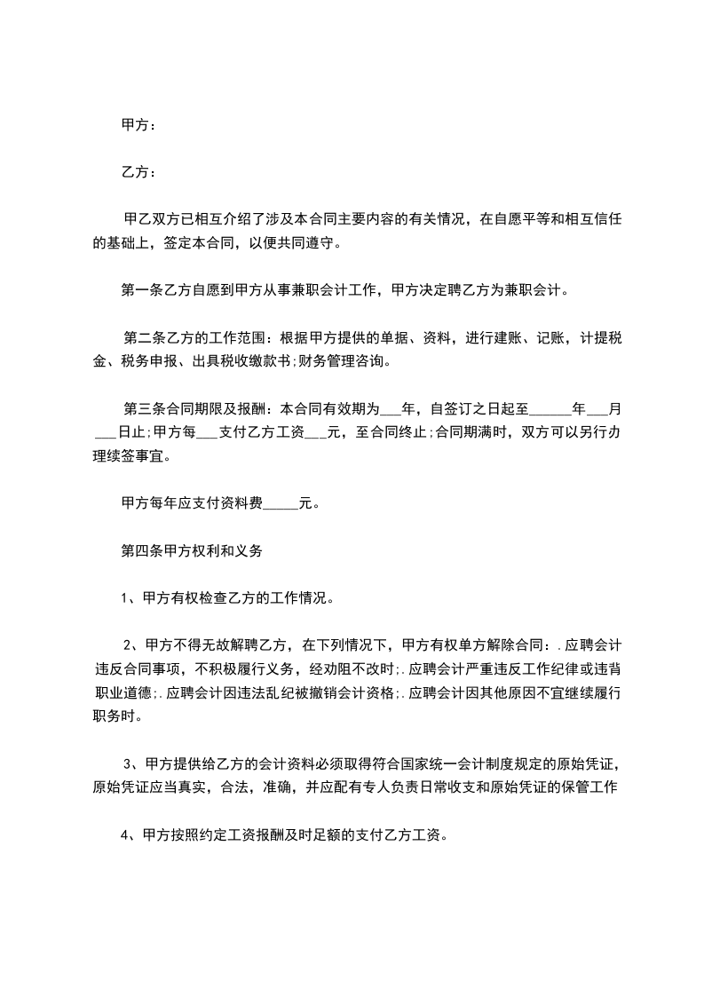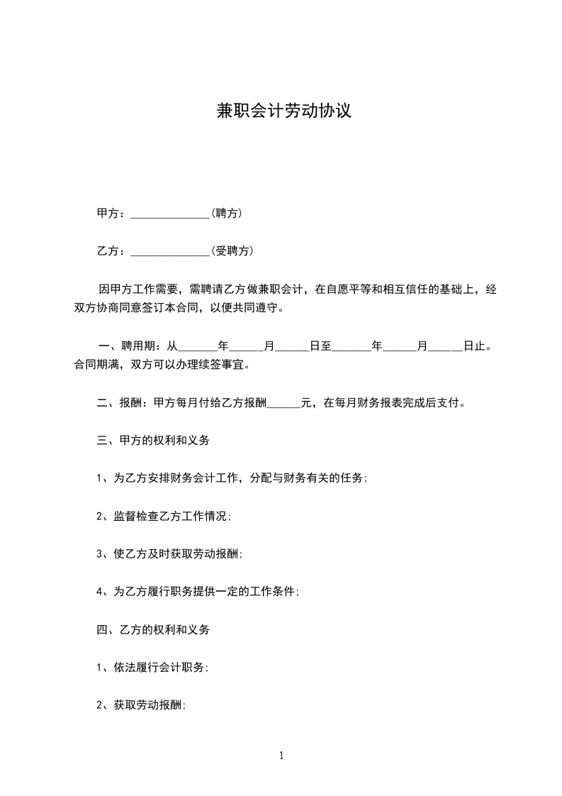 兼职会计劳动合同
