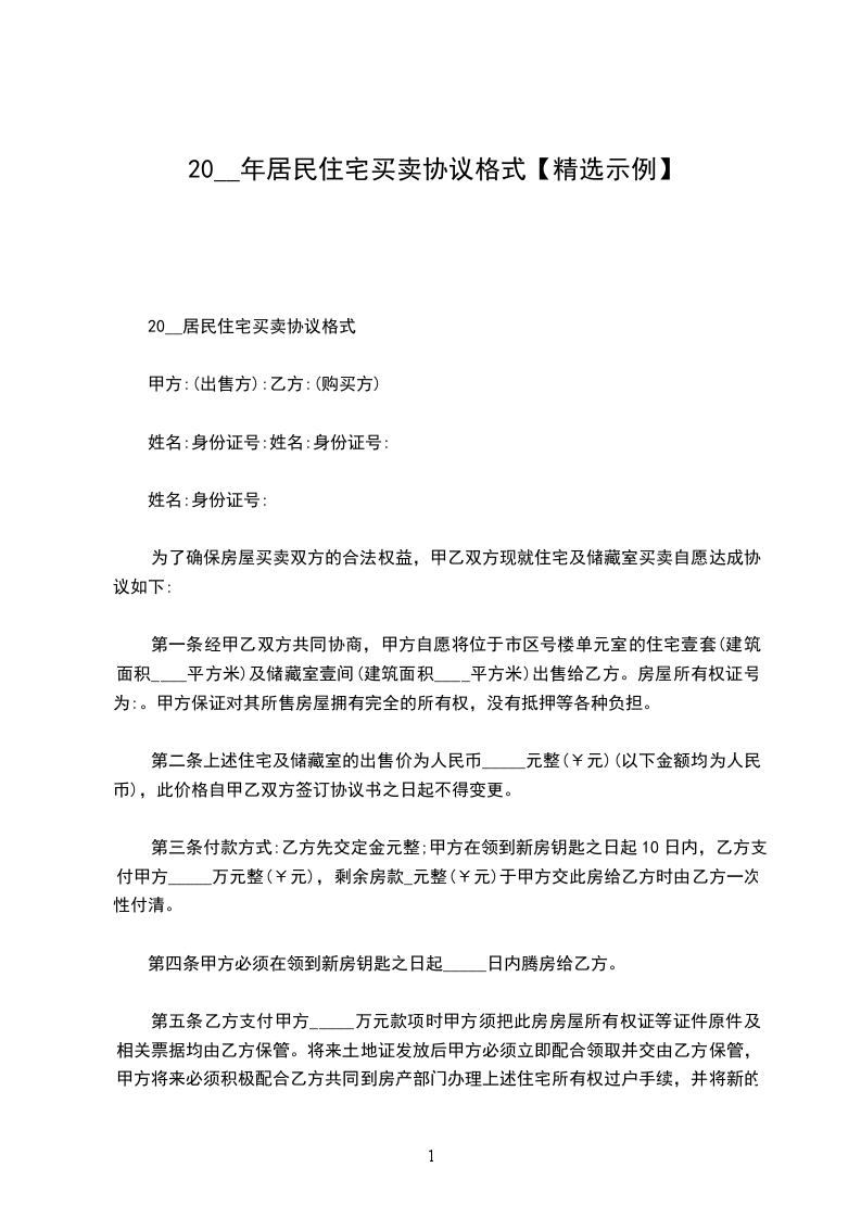第一条经甲乙双方共同协商,甲方自愿将位于市区号楼单元室的住宅壹套(建筑面积____平方米)及储藏室壹间(建筑面积____平方米)出售给乙方。房屋所有权证号为:。甲方保证对其所售房屋拥有完全的所有权,没有抵押等各种负担。