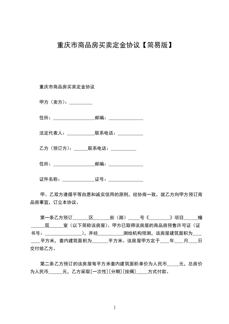 第一条乙方预订_______区_______街(路)_____号《_________》项目______幢______层______室(以下简称该房屋)。甲方已取得该房屋的商品房预售许可证(证书号:________________),并经___________测绘机构预测,该房屋建筑面积为________平方米,套内建筑面积为_______平方米。该房屋甲方定于____年____月____日交付给乙方。