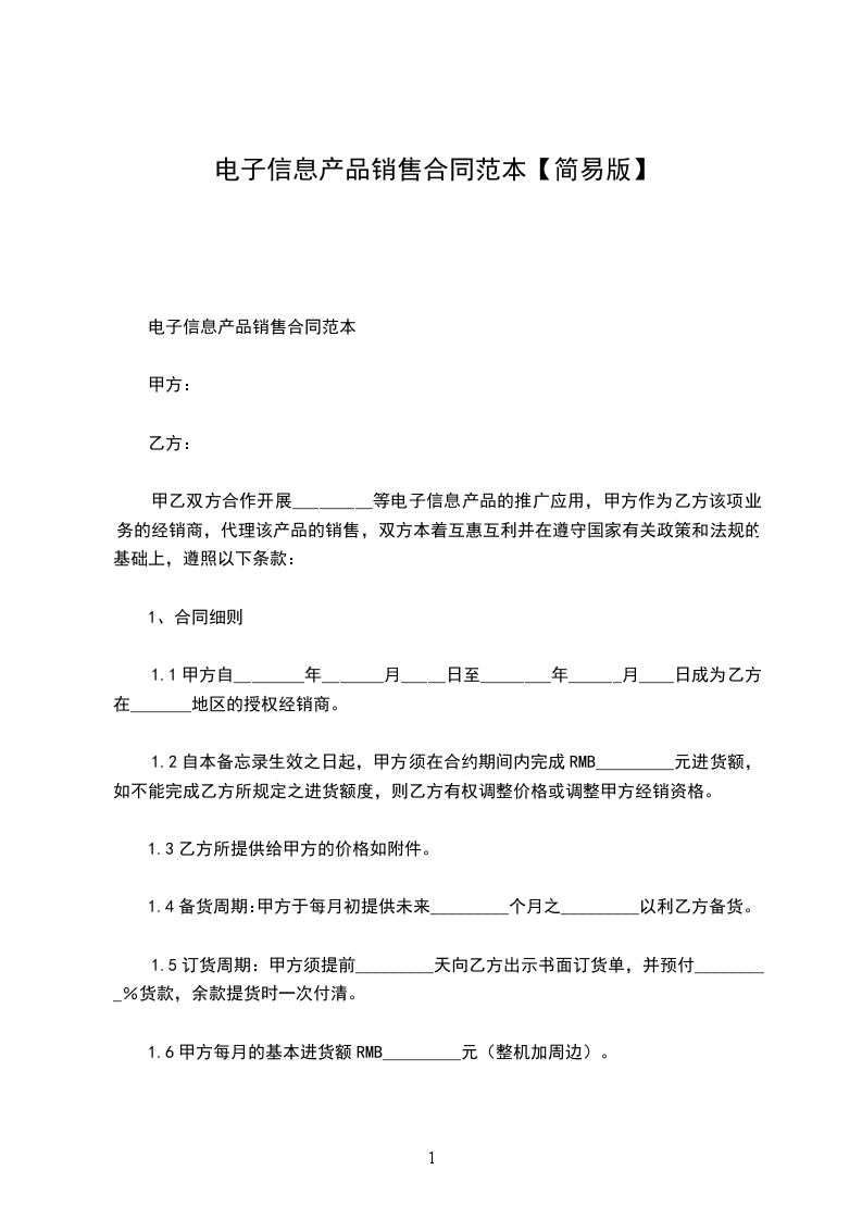 电子信息产品销售合同范本