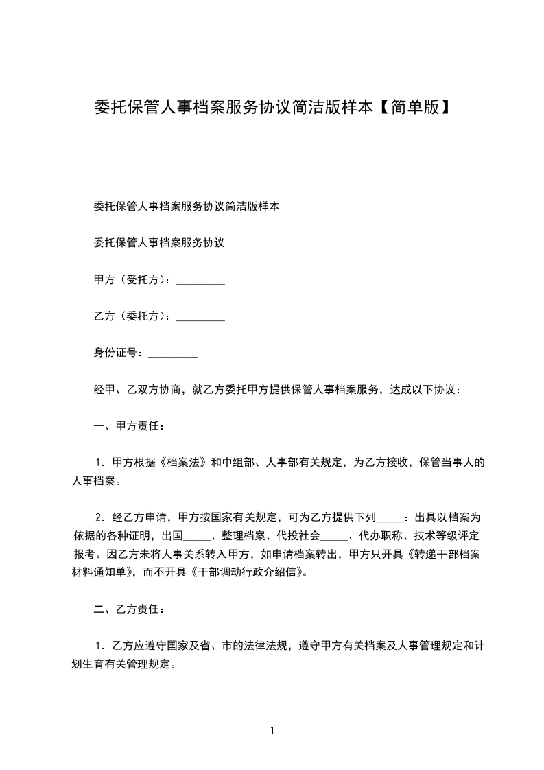 经甲、乙双方协商,就乙方委托甲方提供保管人事档案服务,达成以下协议: