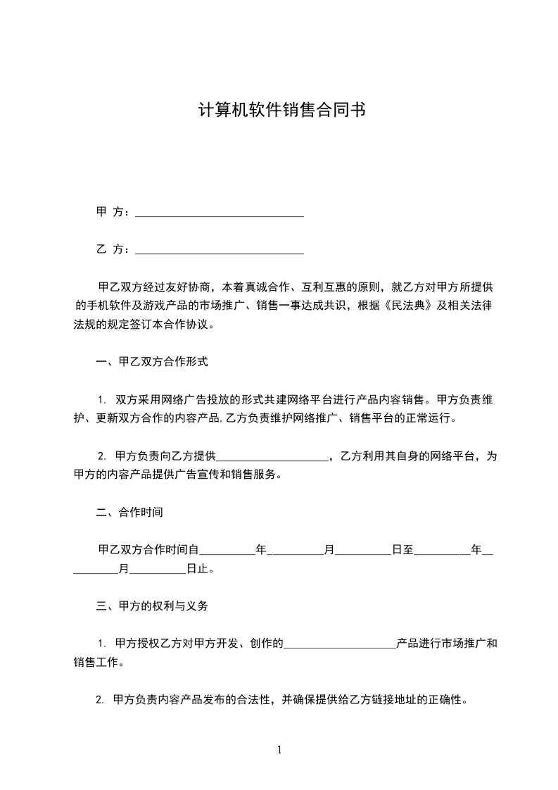 甲乙双方经过友好协商,本着真诚合作、互利互惠的原则,就乙方对甲方所提供的手机软件及游戏产品的市场推广、销售一事达成共识,根据《民法典》及相关法律法规的规定签订本合作协议。
