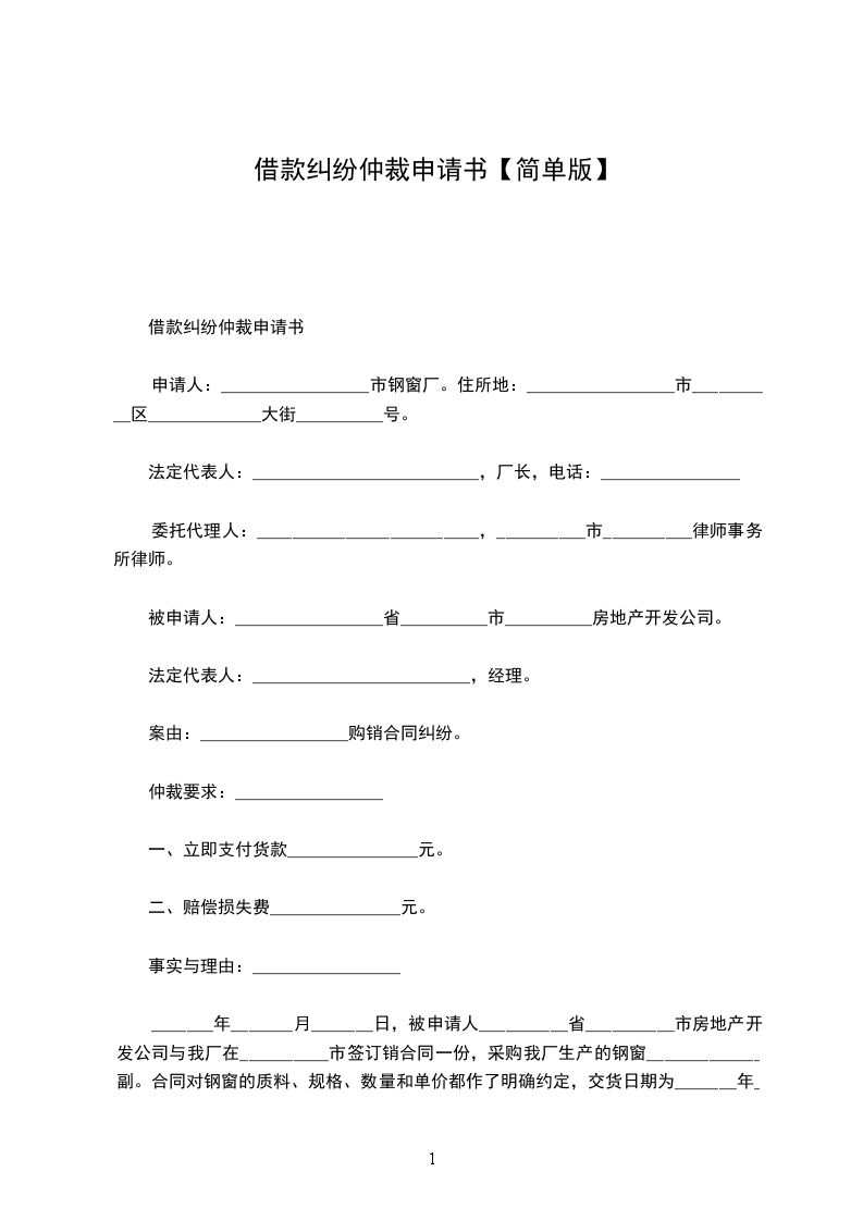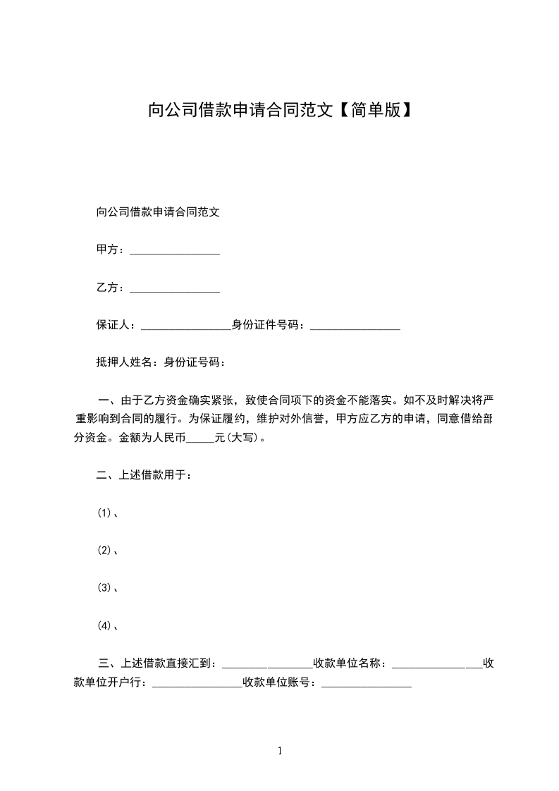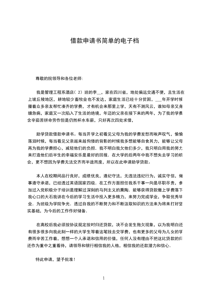 借款申请范本