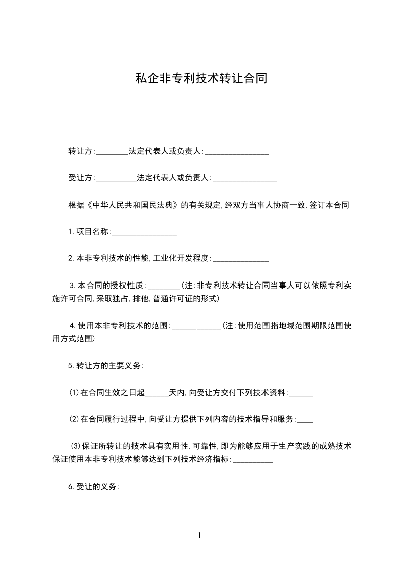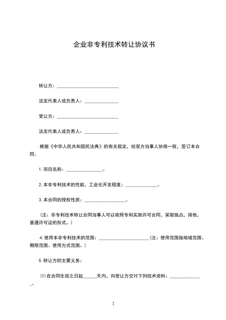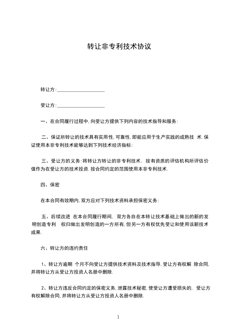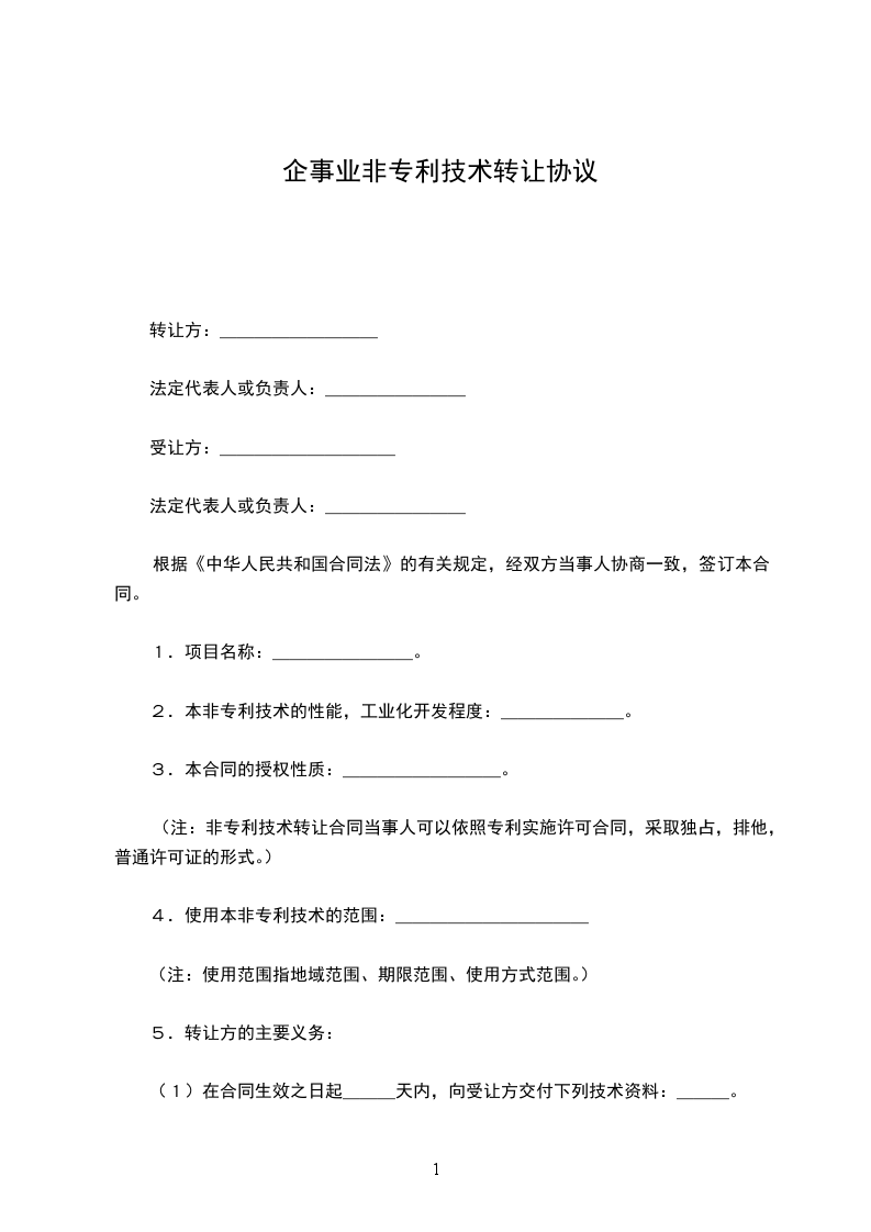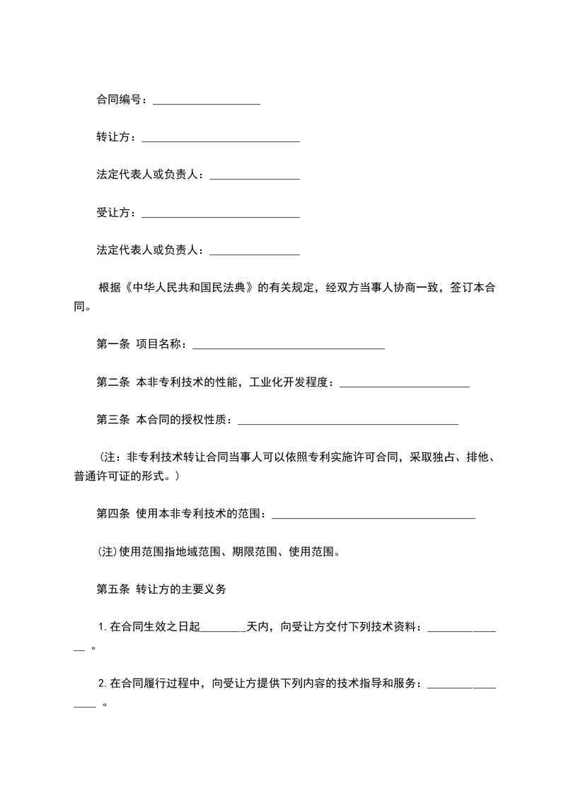 (注:非专利技术转让合同当事人可以依照专利实施许可合同,采取独占或排他或普通许可证的形式。)