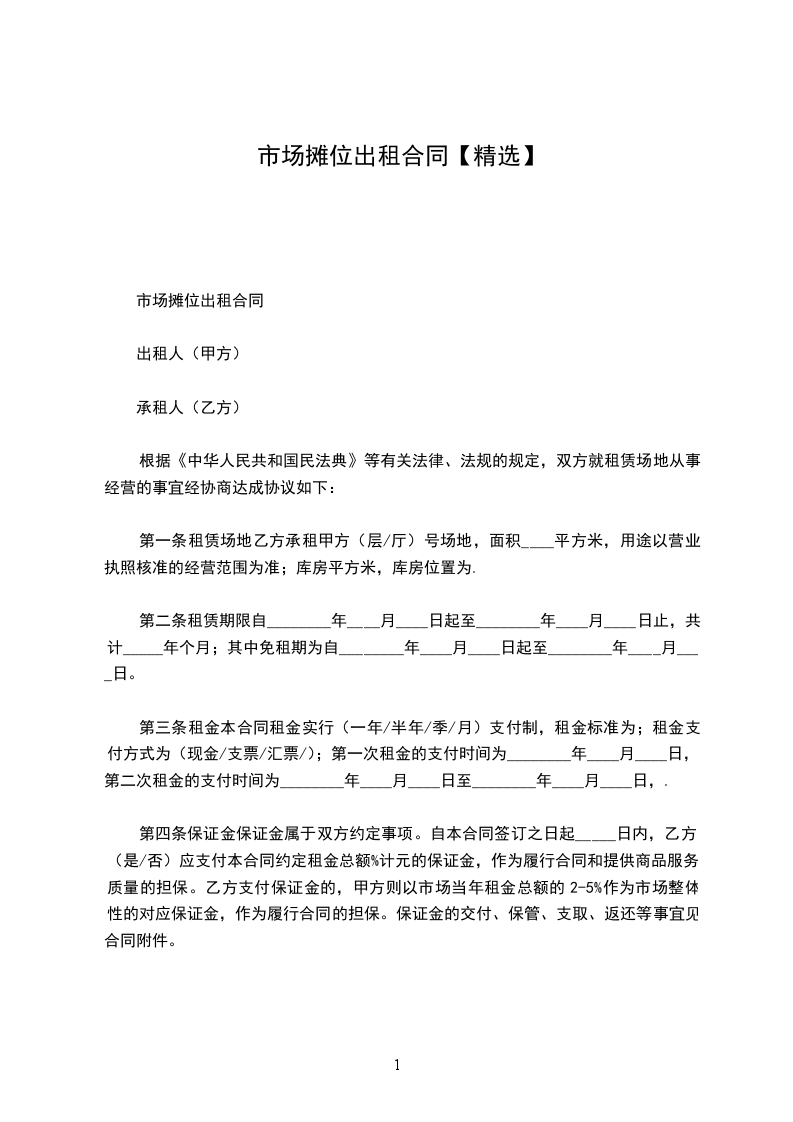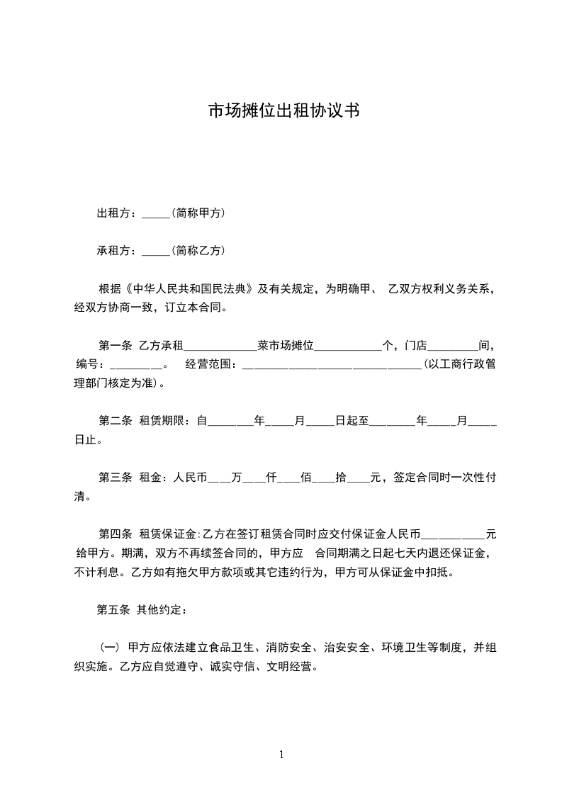第四条保证金保证金属于双方约定事项。自本合同签订之日起_____日内,乙方(是/否)应支付本合同约定租金总额%计元的保证金,作为履行合同和提供商品服务质量的担保。乙方支付保证金的,甲方则以市场当年租金总额的2-5%作为市场整体性的对应保证金,作为履行合同的担保。保证金的交付、保管、支取、返还等事宜见合同附件。