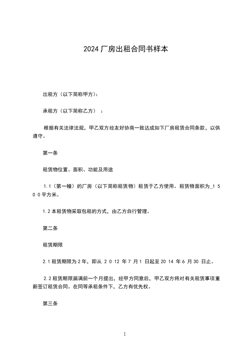 一、甲方将位于XX市XX街道XX小区X号楼XXXX号的房屋出租给乙方居住使用,租赁期限自XX年XX月XX日至XX年XX月XX日,计X个月。