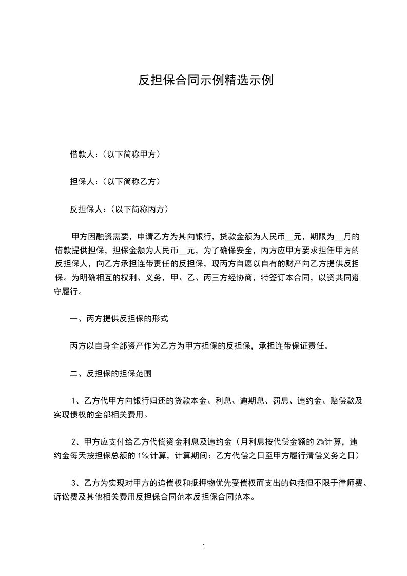 一、丙方提供反担保的形式