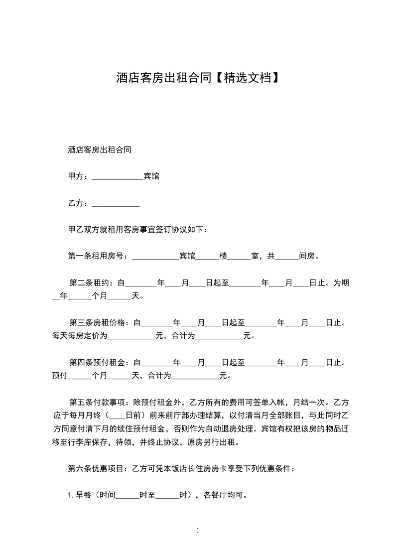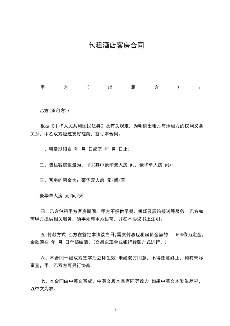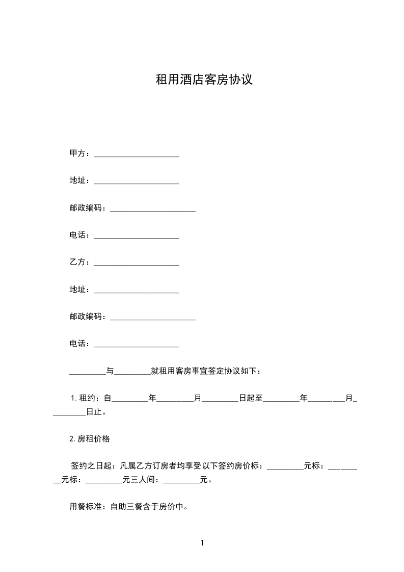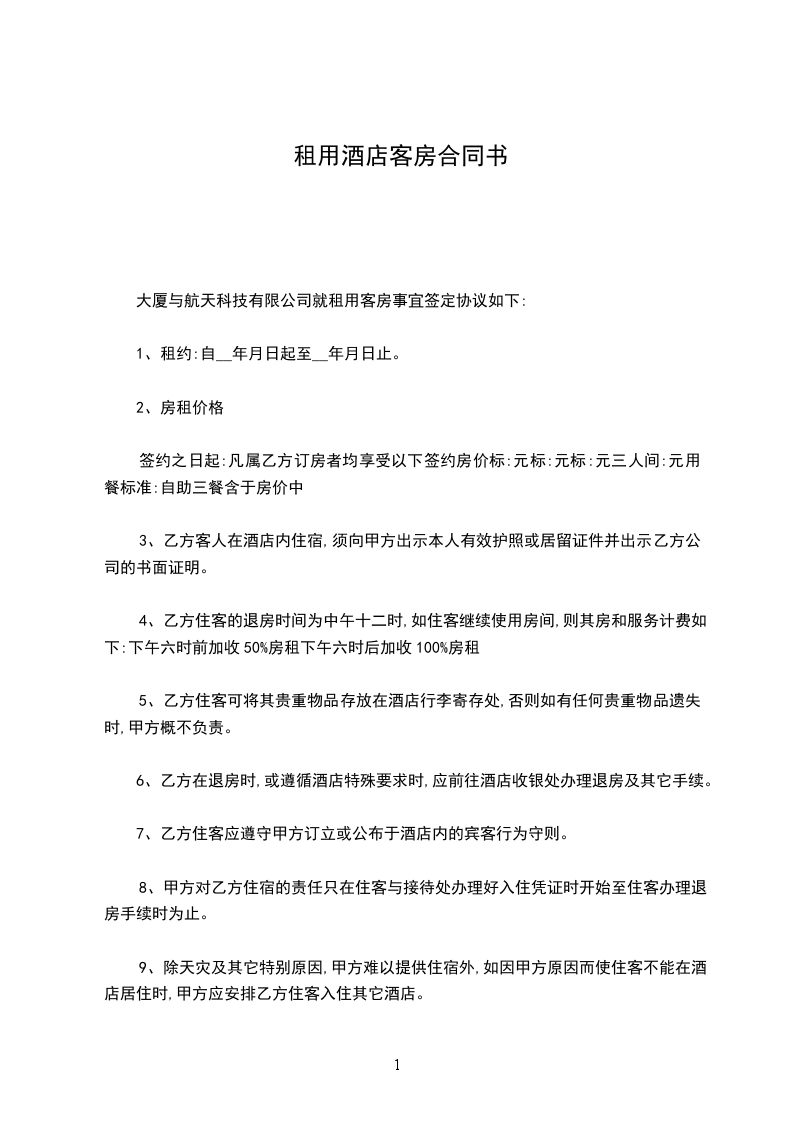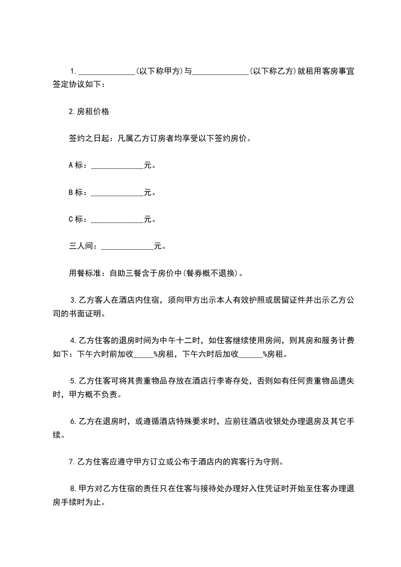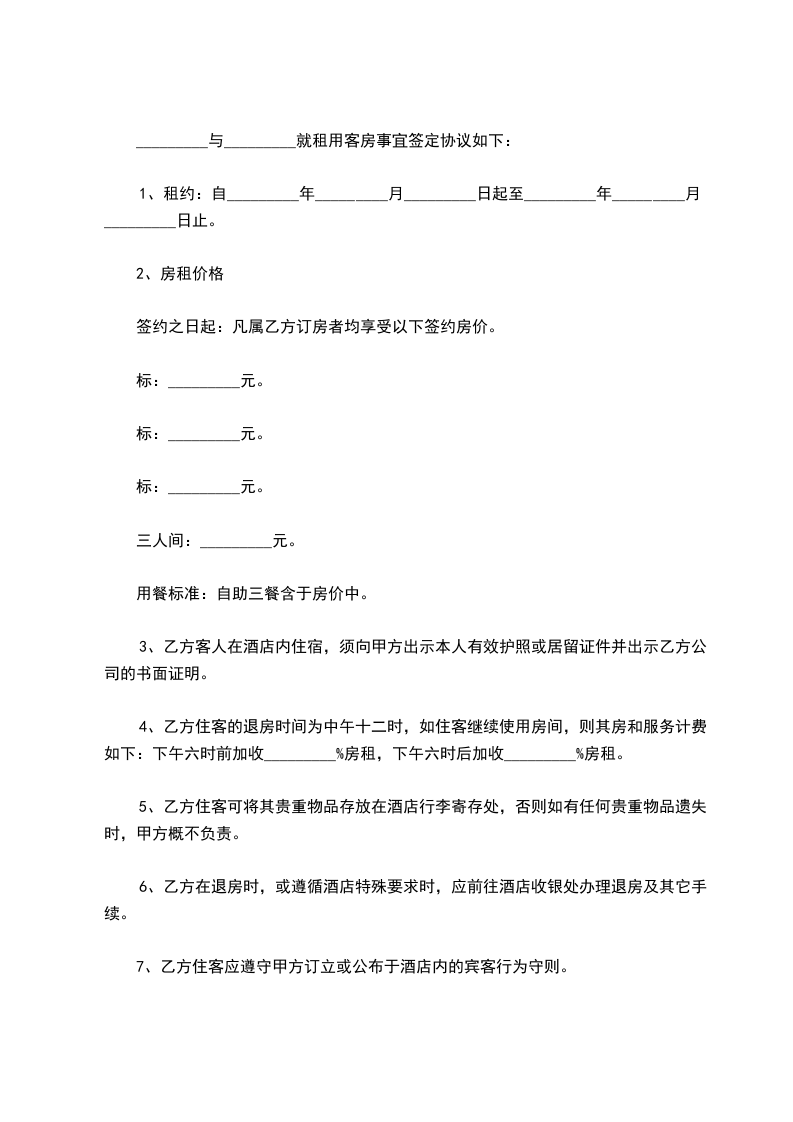 第一条租用房号:____________宾馆______楼______室,共______间房。