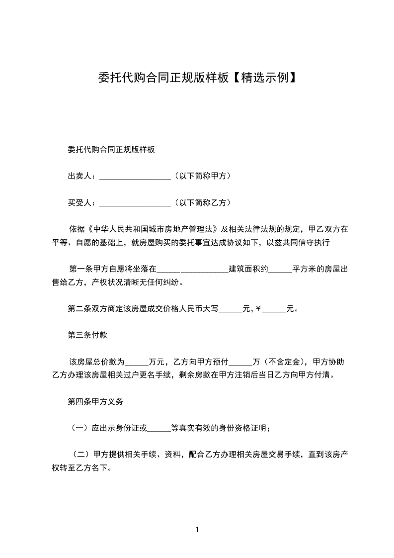 委托代购合同正规版样板