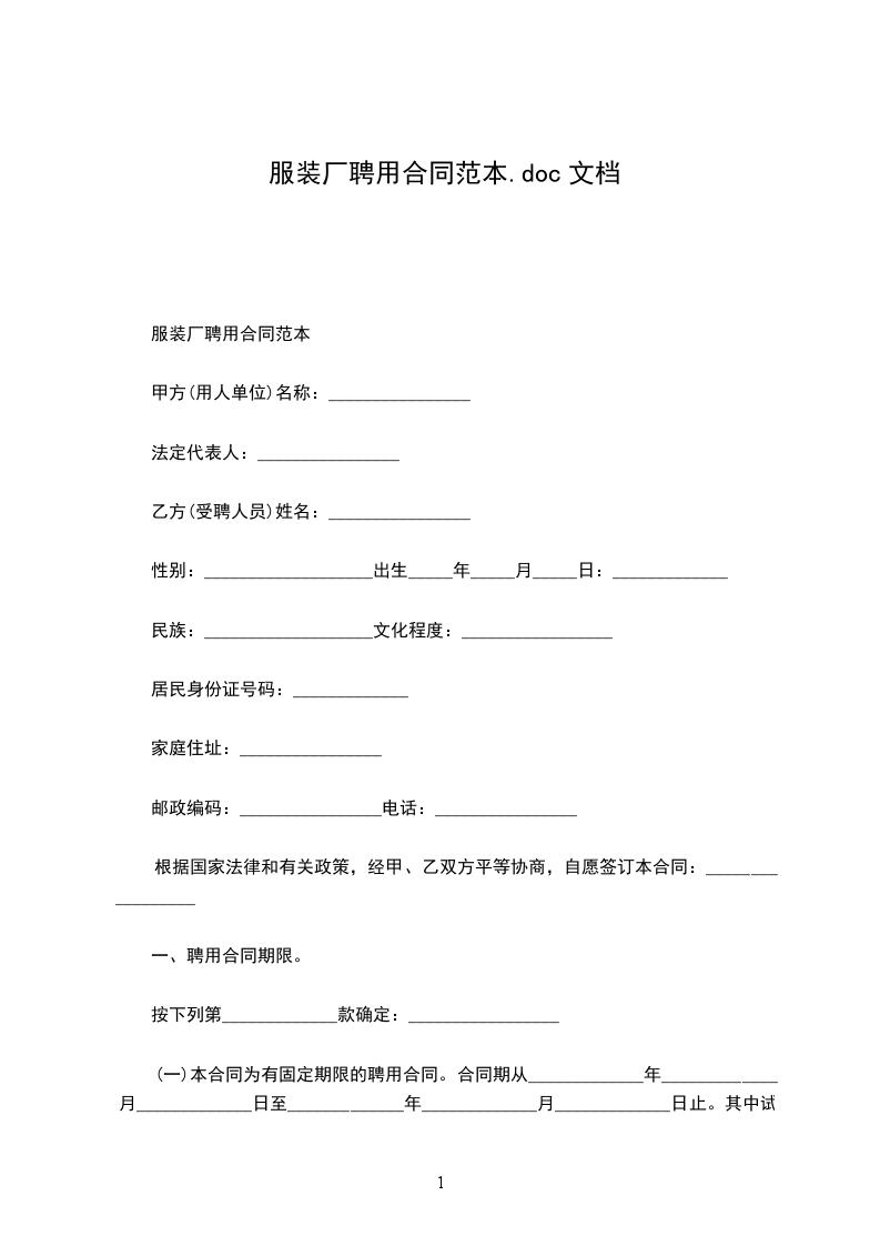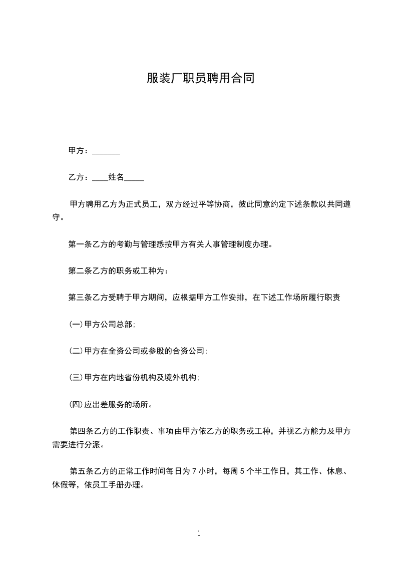 服装厂聘用合同