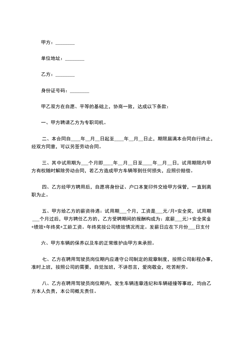 第一条本合同期限为__年(含试用期月),自_____年_____月_____日(首次合同从报到之日起,续签合同从签字之日起)至_____年_____月_____日。