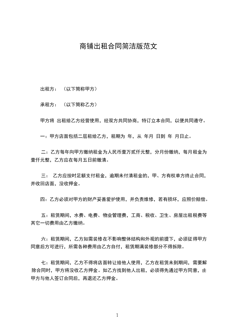一:甲方店面包括二层租给乙方,租期为 年,从 年月 日到 年 月日止。
