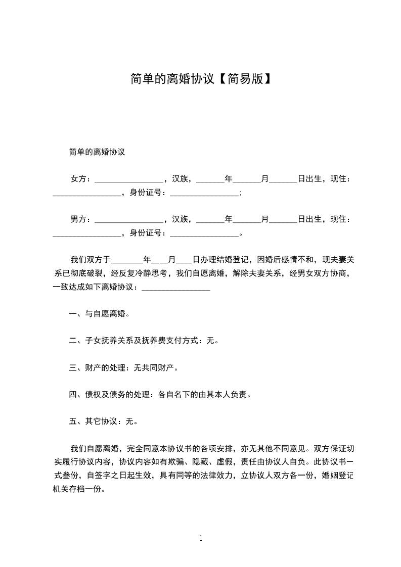 女方:_________________,汉族,_______年_______月_______日出生,现住:_________________,身份证号:_________________;