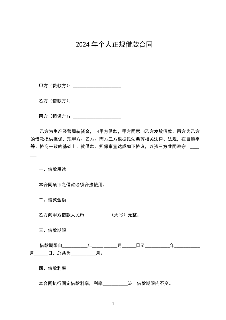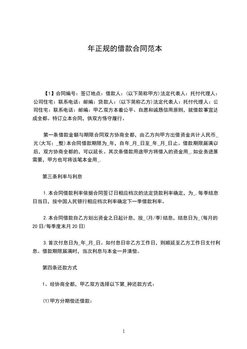 20__正规借款合同范文