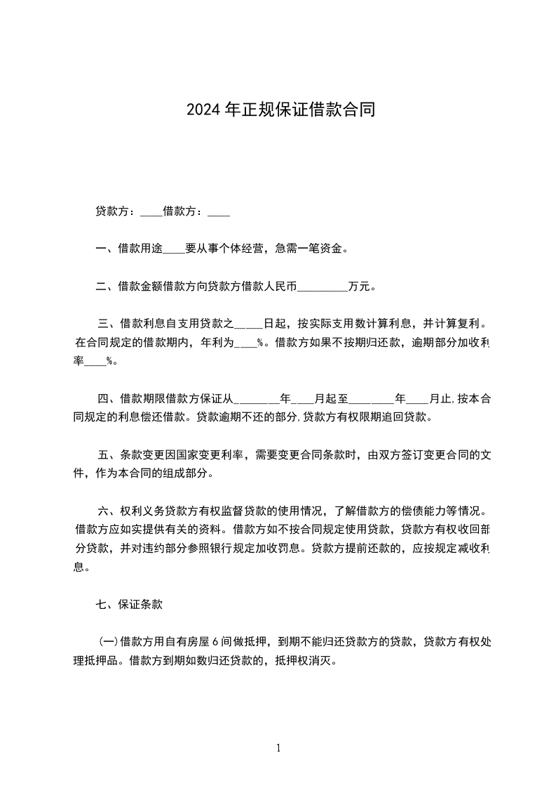 四、借款到期日为__年_月_日,到期日一次性还本付息。到期不付则可按照约定利息继续计算,并加缴__%的滞纳金。担保人对本息和滞纳金承担一般连带责任。