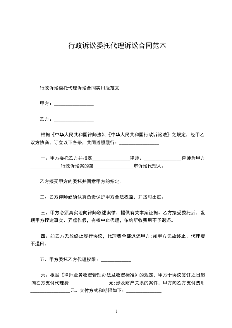 根据《中华人民共和国律师法》、《中华人民共和国行政诉讼法》之规定,经甲乙双方协商,订立以下各条,共同遵照履行:_________________