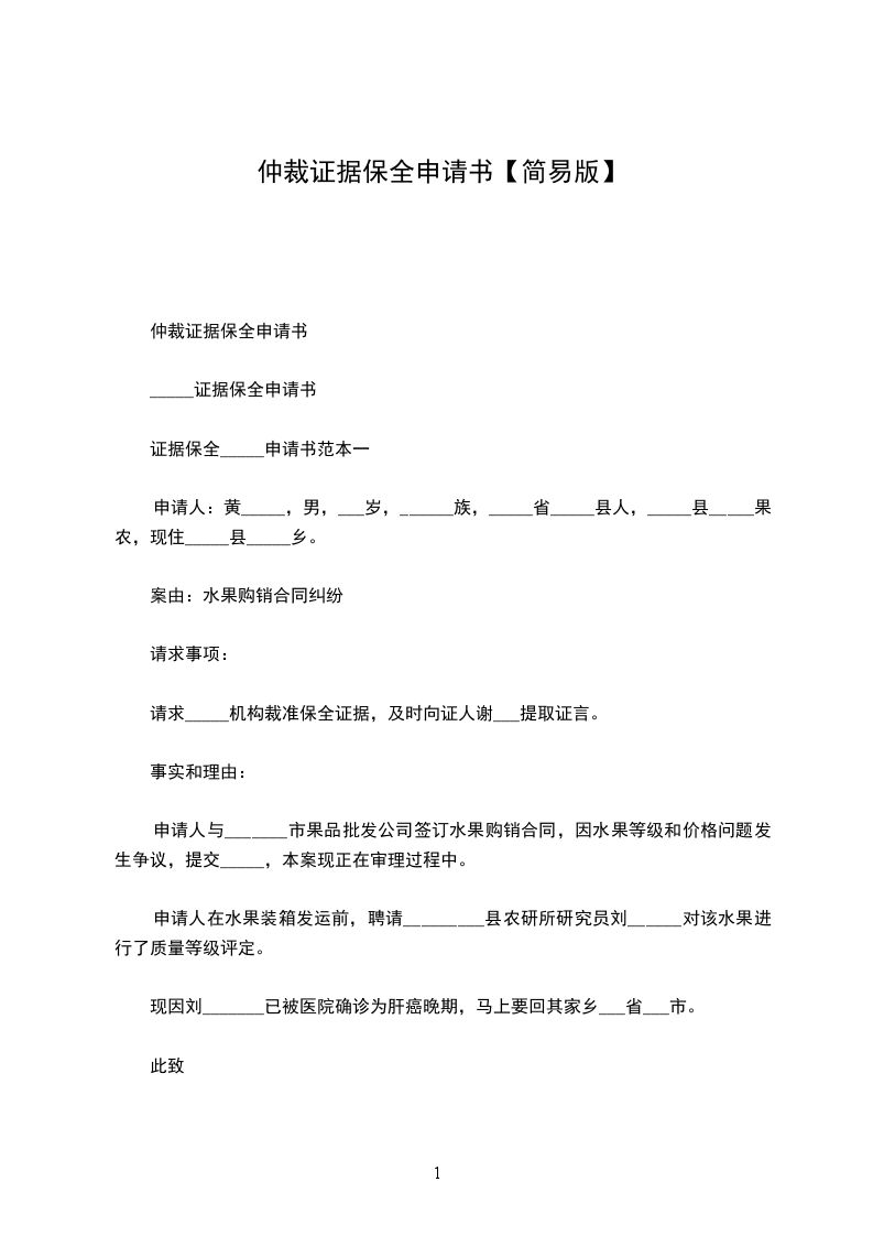 申请人:黄_____,男,___岁,______族,_____省_____县人,_____县_____果农,现住_____县_____乡。
