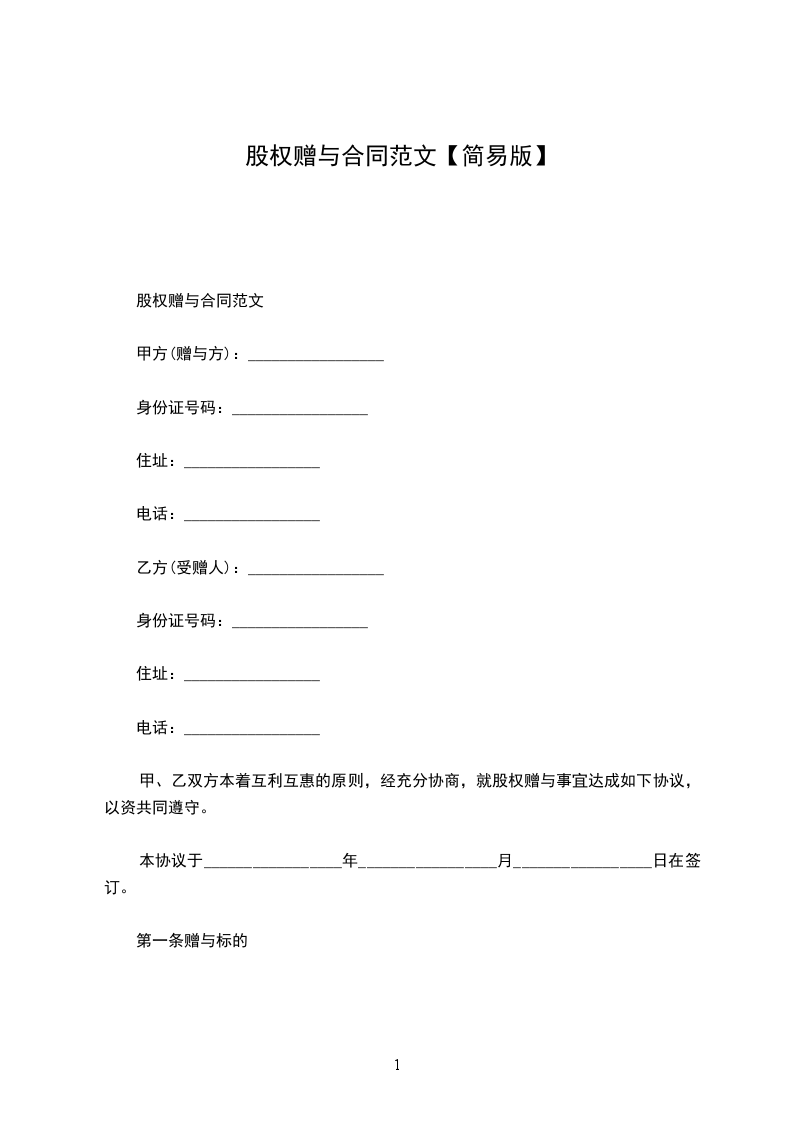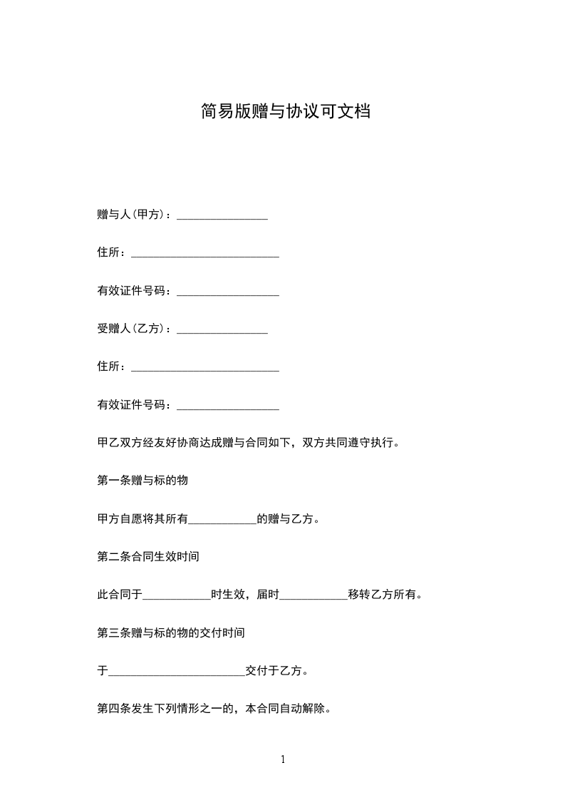 一、甲方将其所有的(标的物)_______________赠送给乙方,其所有权证明为:_________________(写明证明甲方拥有所有权的证据名称,如赠与房屋,就应有房产所有权证,赠与微机应有购买该微机的发票等)