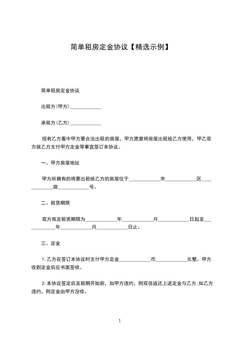 1.乙方在签订本协议时支付甲方定金_____________币_____________元整。甲方收到定金后应书面签收。