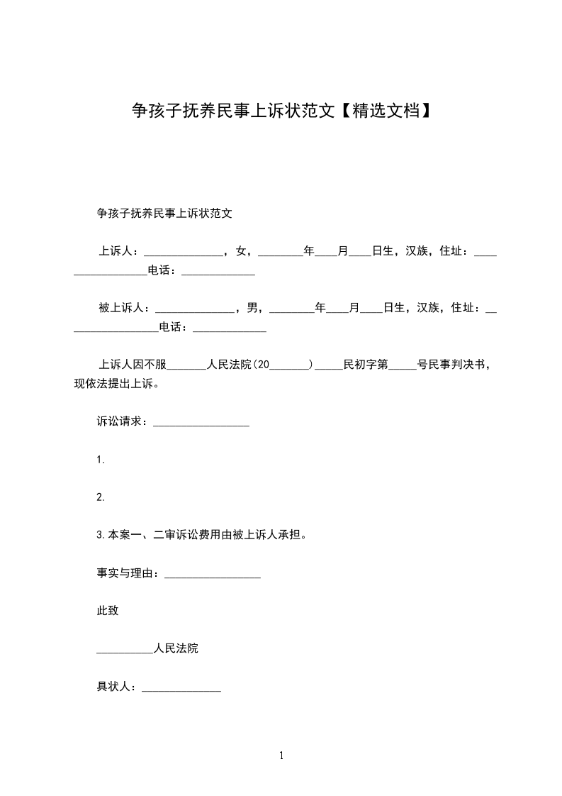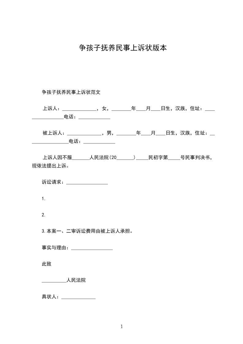争孩子抚养民事上诉状