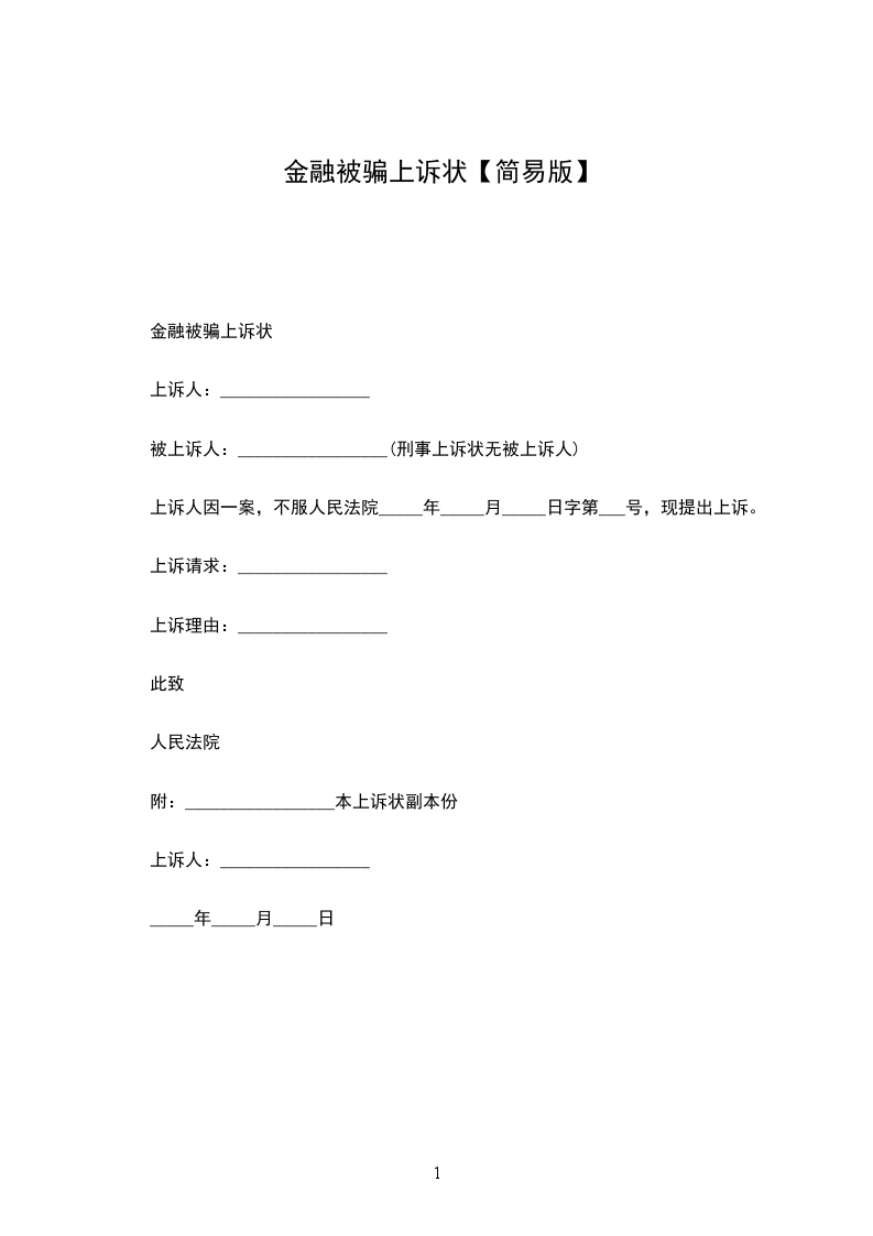 金融被骗上诉状