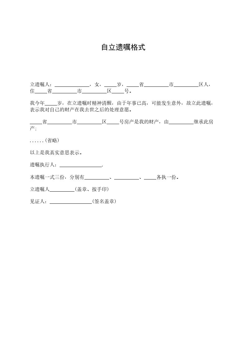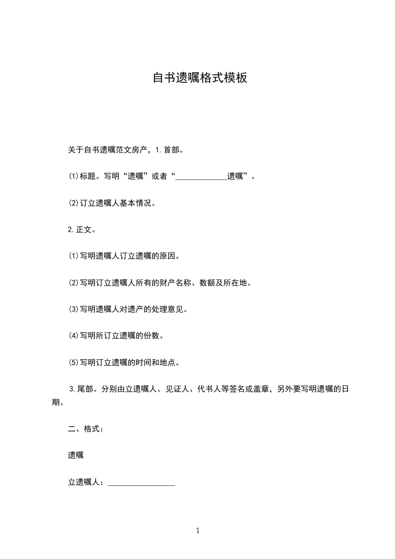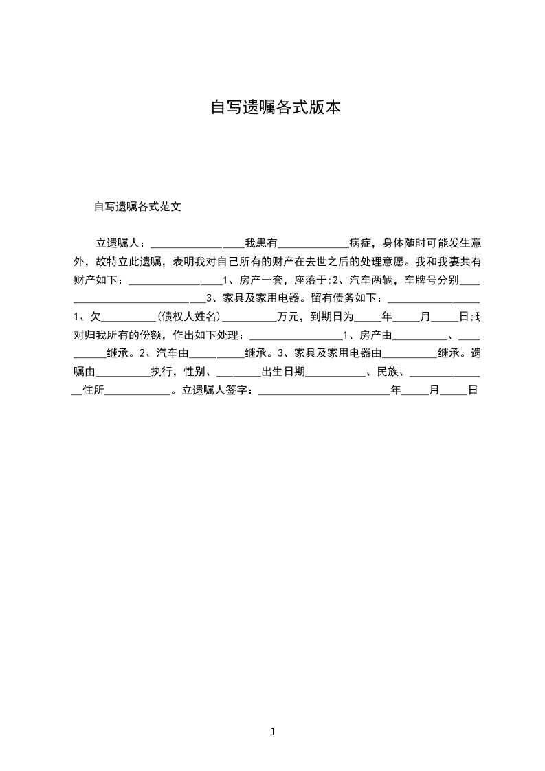 自写遗嘱各式模板