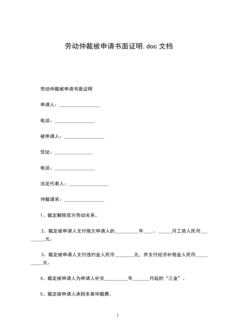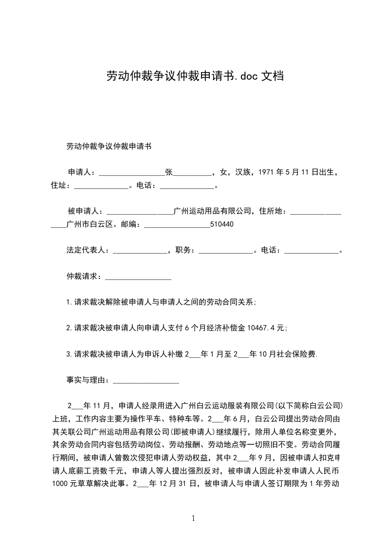 昆明劳动仲裁申请书