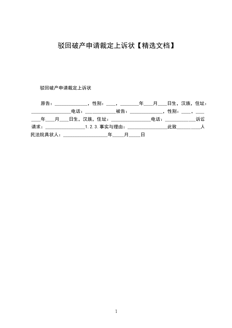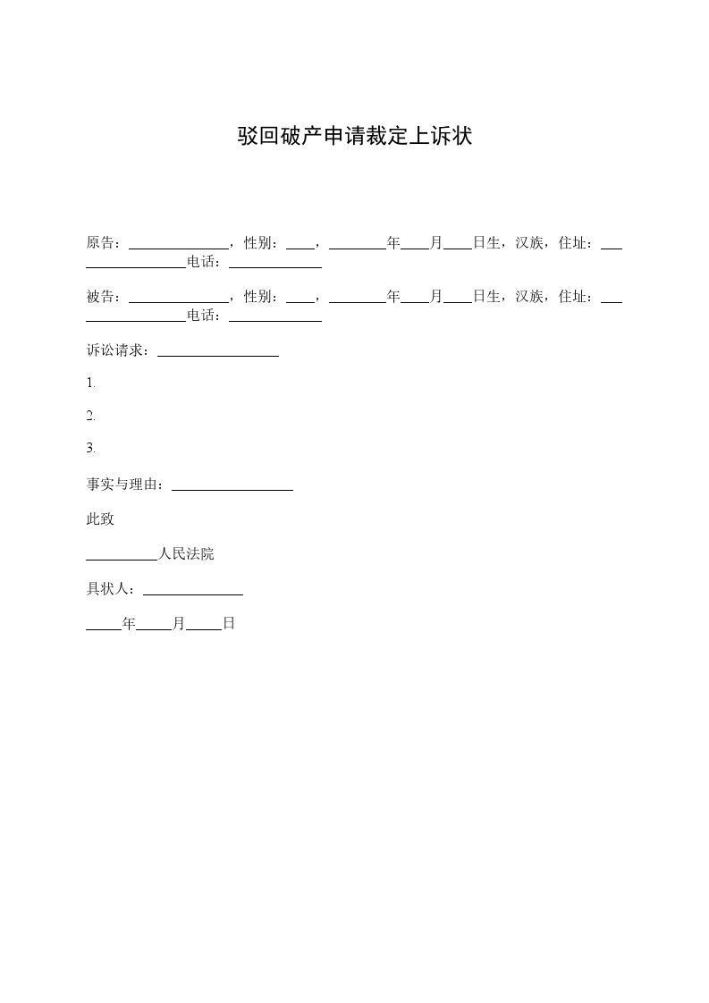 驳回破产申请上诉状