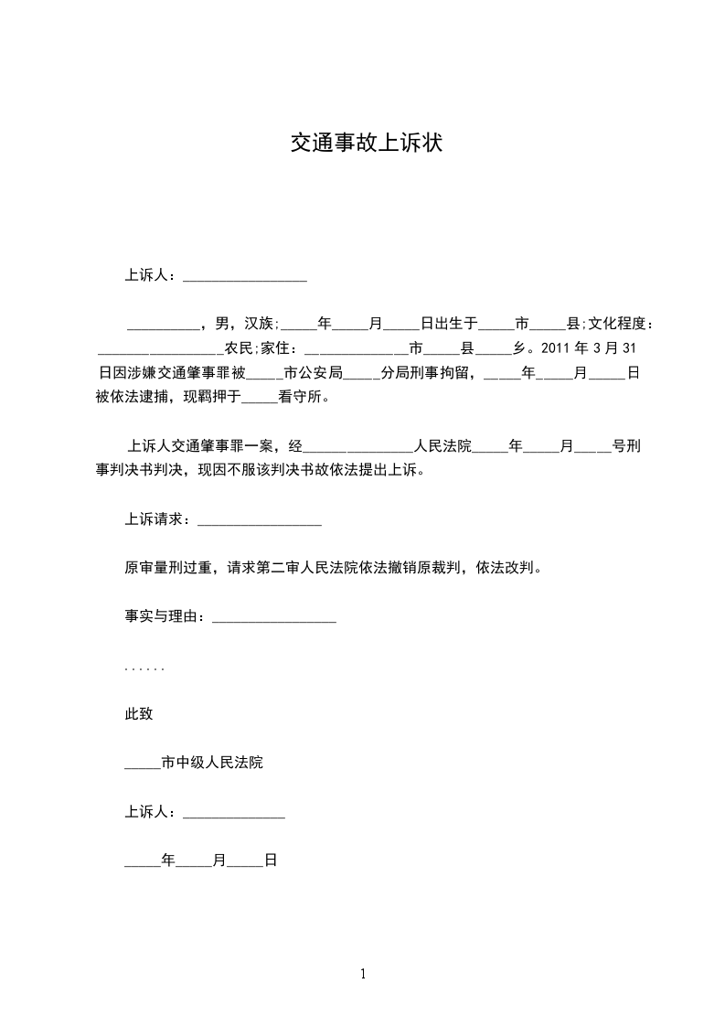 报废车发生交通事故上诉状