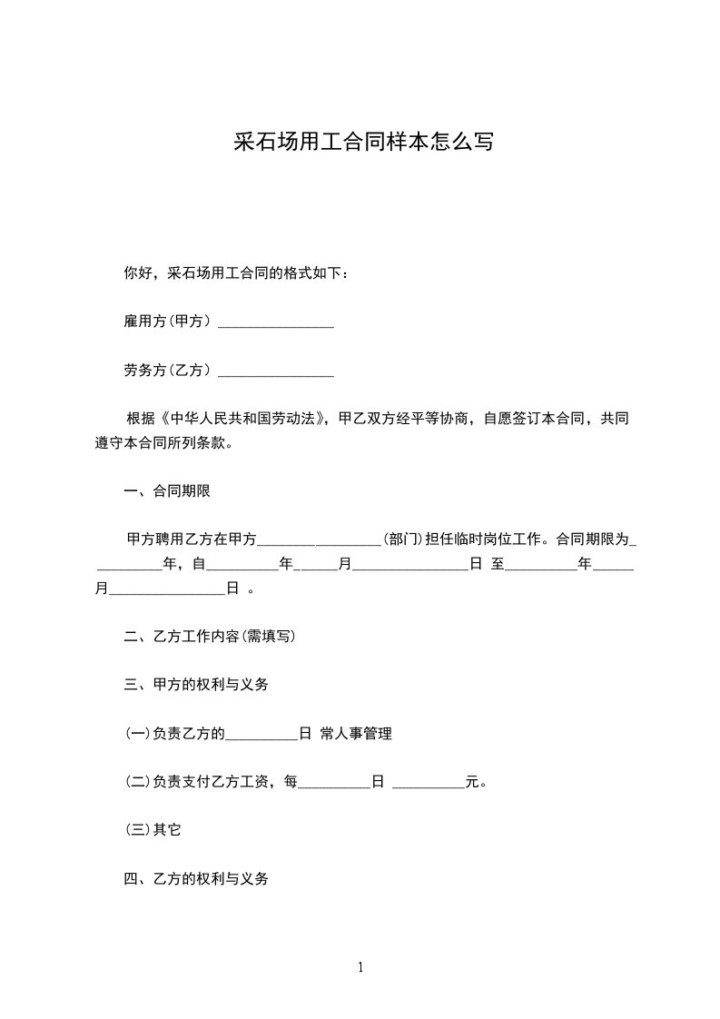 甲方聘用乙方在甲方_________________(部门)担任临时岗位工作。合同期限为__________年,自__________年______月______日至__________年______月______日。