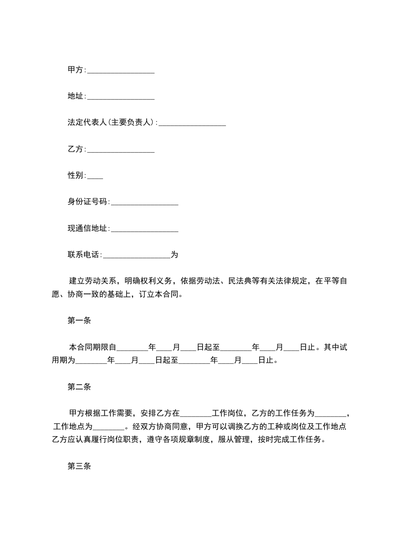 建立劳动关系,明确权利义务,依据劳动法、民法典等有关法律规定,在平等自愿、协商一致的基础上,订立本合同。