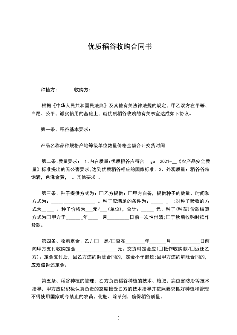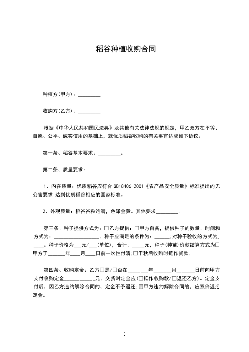 第三条谷种提供方式为具体品种由收购方提供,要求种子质量达到国家标准要求,谷种价款结算方式:于秋后收购时抵作货款。
