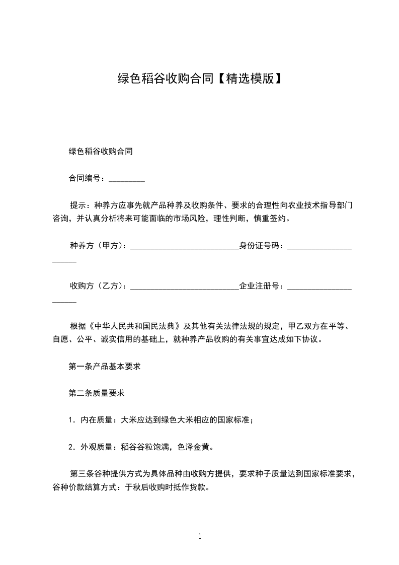 根据《中华人民共和国民法典》及其他有关法律法规的规定,甲乙双方在平等、自愿、公平、诚实信用的基础上,就种养产品收购的有关事宜达成如下协议。