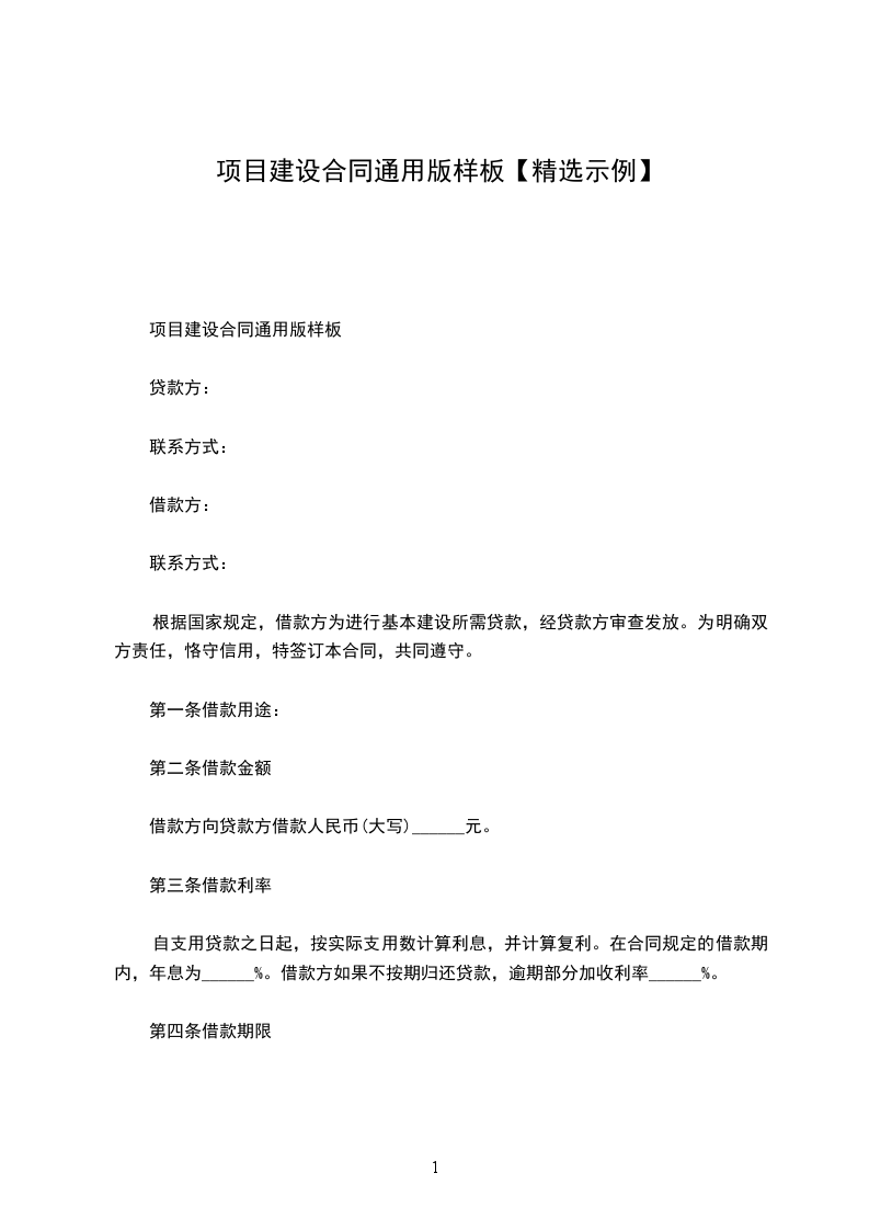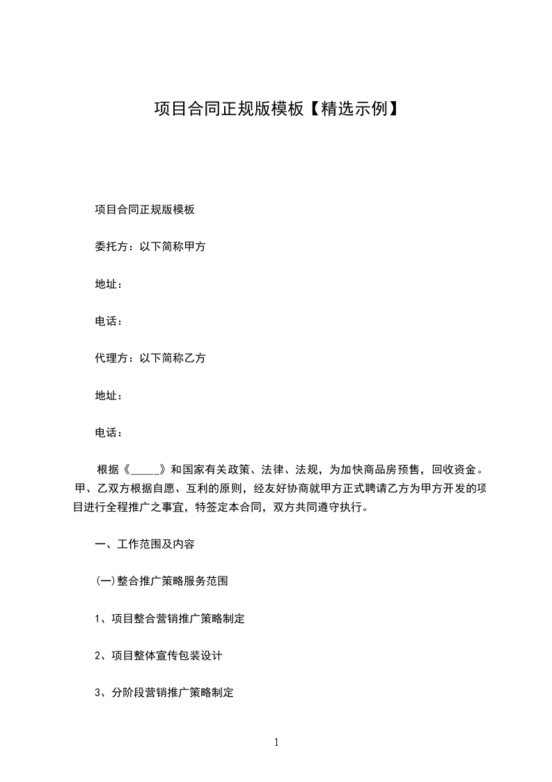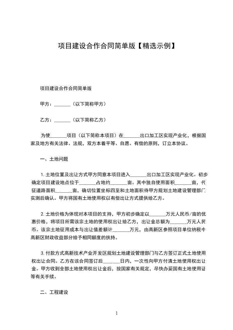 项目建设合同正规版模板