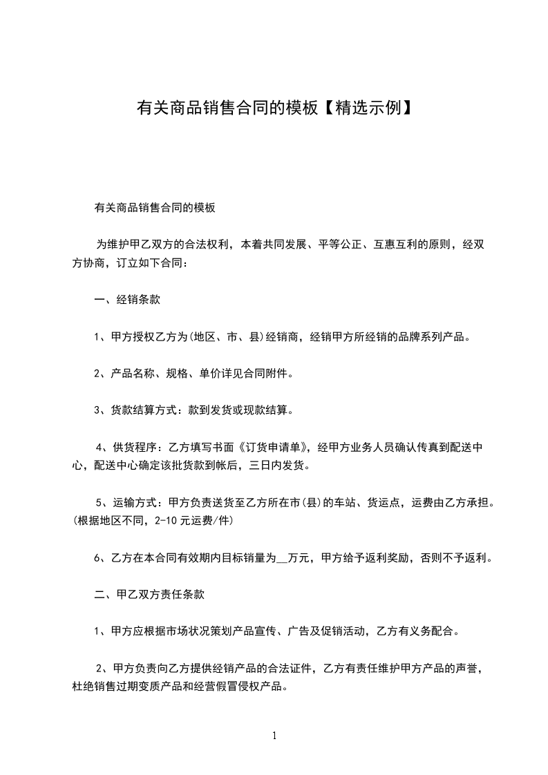 1、甲方授权乙方为(地区、市、县)经销商,经销甲方所经销的品牌系列产品。