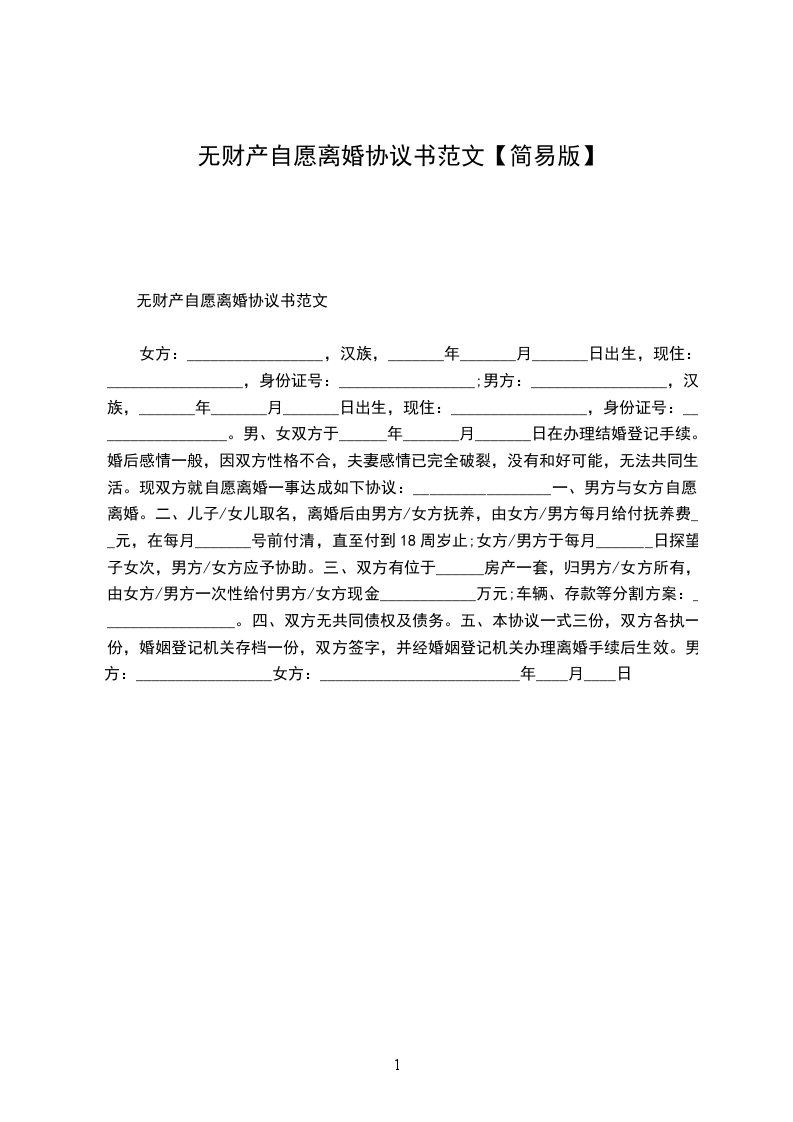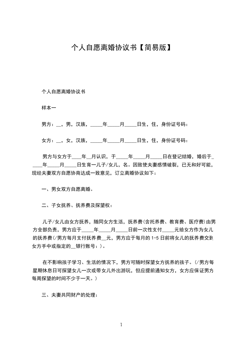 (本自愿离婚协议书一式三份,当事人双方各执一份,交婚姻登记机关或人民法院存档备案一份)