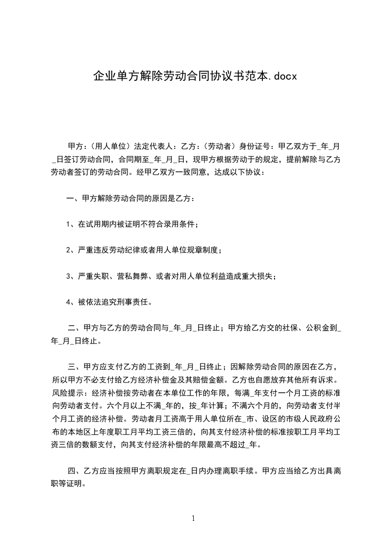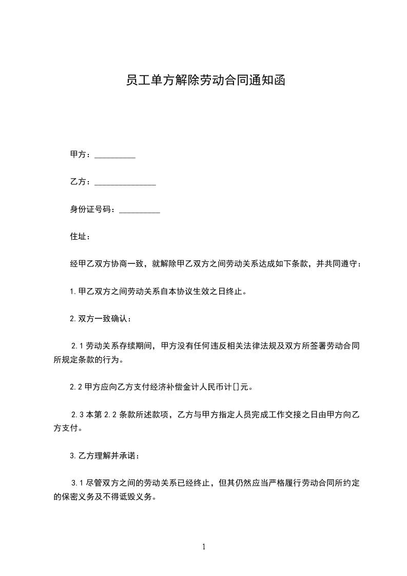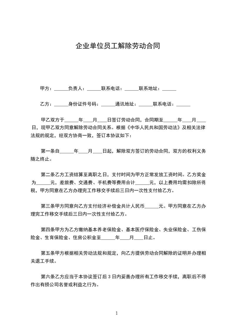 自_________________年_________________月_________________日起,解除双方签订的劳动合同,双方的权利义务随之终止;