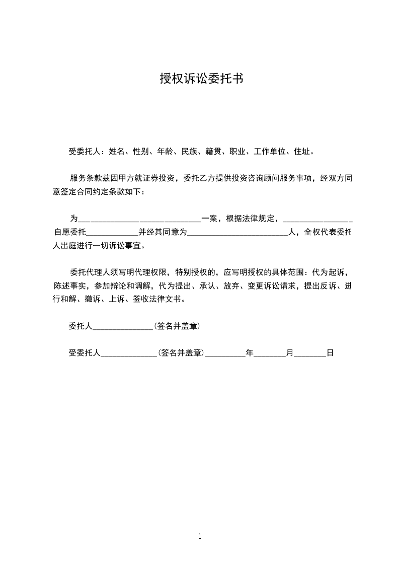 委托人:_________________姓名________________性别________________出生年月________________民族________________工作单位________________职业________________住址________________。