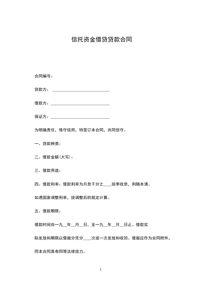信托资金借贷合同