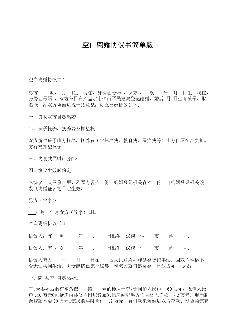 男方:_________________,汉族,_______年_______月_______日出生,现住:_________________,身份证号:_________________。