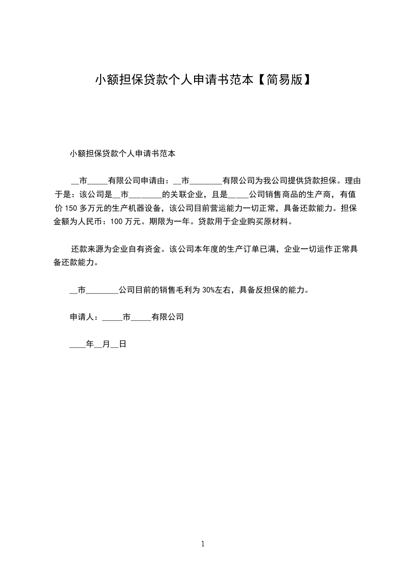 我是__县__镇__村__村民___,身份证号为__________________,于2___年1月自筹资金_万元,在本村种植了亩经济林木,目前经营良好,为扩大经营规模,更好创业,特向永登县小额贷款信用担保中心申请小额担保贷款_万元,期限二年,用作林木种植扩大资金。本人承诺申请以诚实为原则,接受贵中心人员对本人经营状况、家庭情况、收入情况进行调查,如贷款申请成功,本人将自觉履行贷款合同及相关规定,按时还款。请贵中心按政府有关政策给予审批为盼。