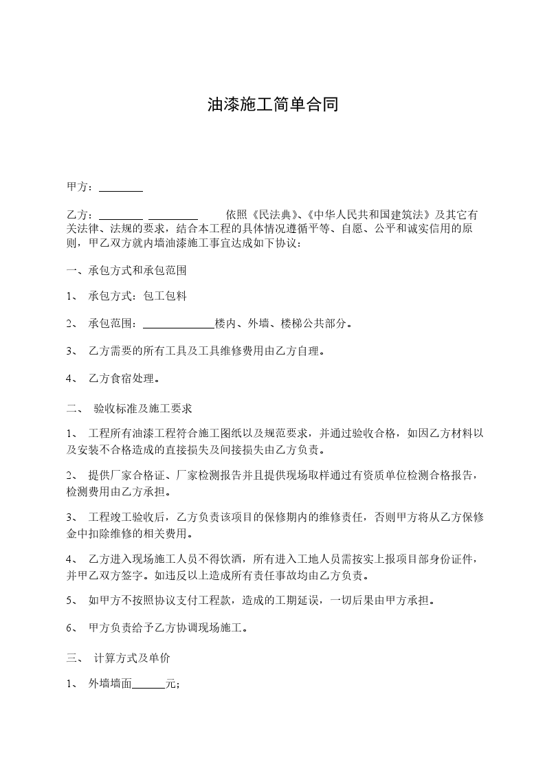 1、甲方应给现场施工人员提供施工所需的水、电。2、施工中,甲方需要变更或增加施工项目时,应及时如实通知乙方,双方应签订项目变更表,商议好造价情况。3、甲方应配合乙方施工人员的工作;甲方有权随时监督乙方作业情况,如发现乙方工作不负责,则甲方有权立即终止合同。4、漆色要求:_________________。