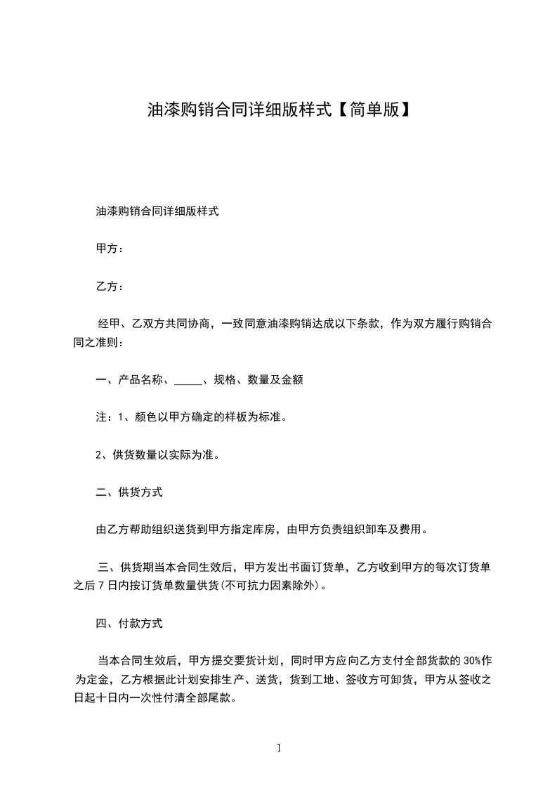油漆购销合同详细版样式